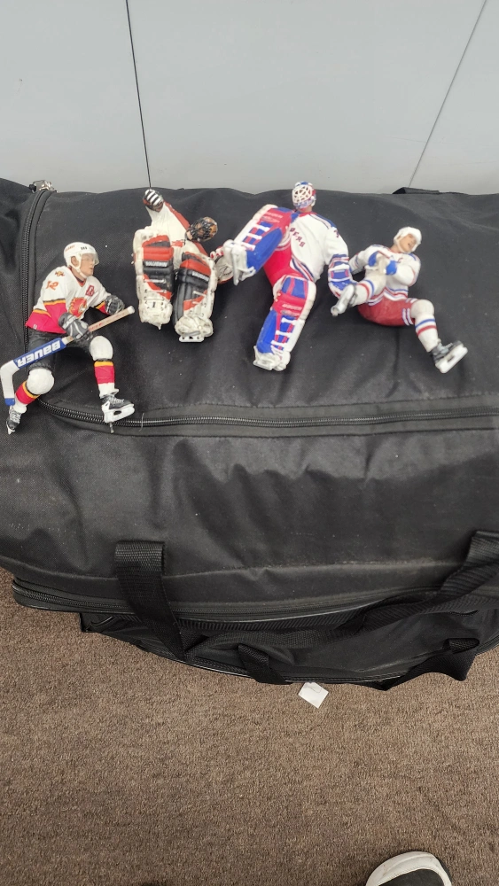Selling a set of hockey player figurines! You'll find legends like Messier (#11), Richter (#35), Boucher (#35), and Iginla (#12). Great for any hockey fan or collector!