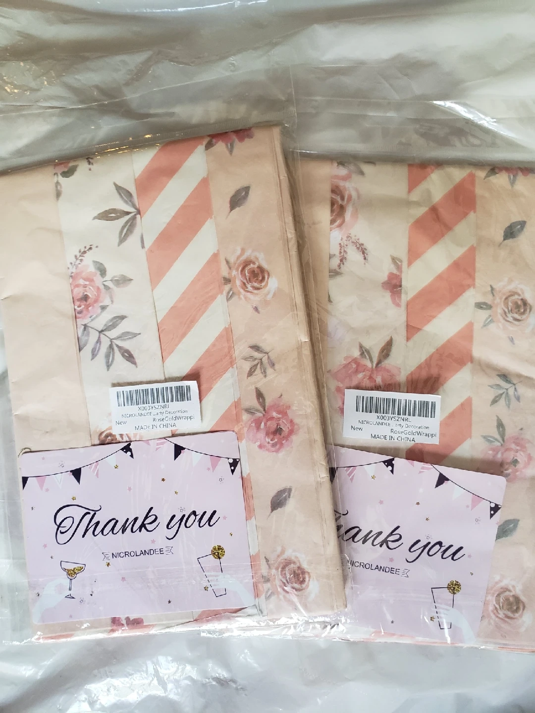 I have new NICROLANDEE rose gold wrapping paper for sale! It's perfect for adding a touch of elegance to any gift or party decoration. The wrapping paper is brand new and ready to use!