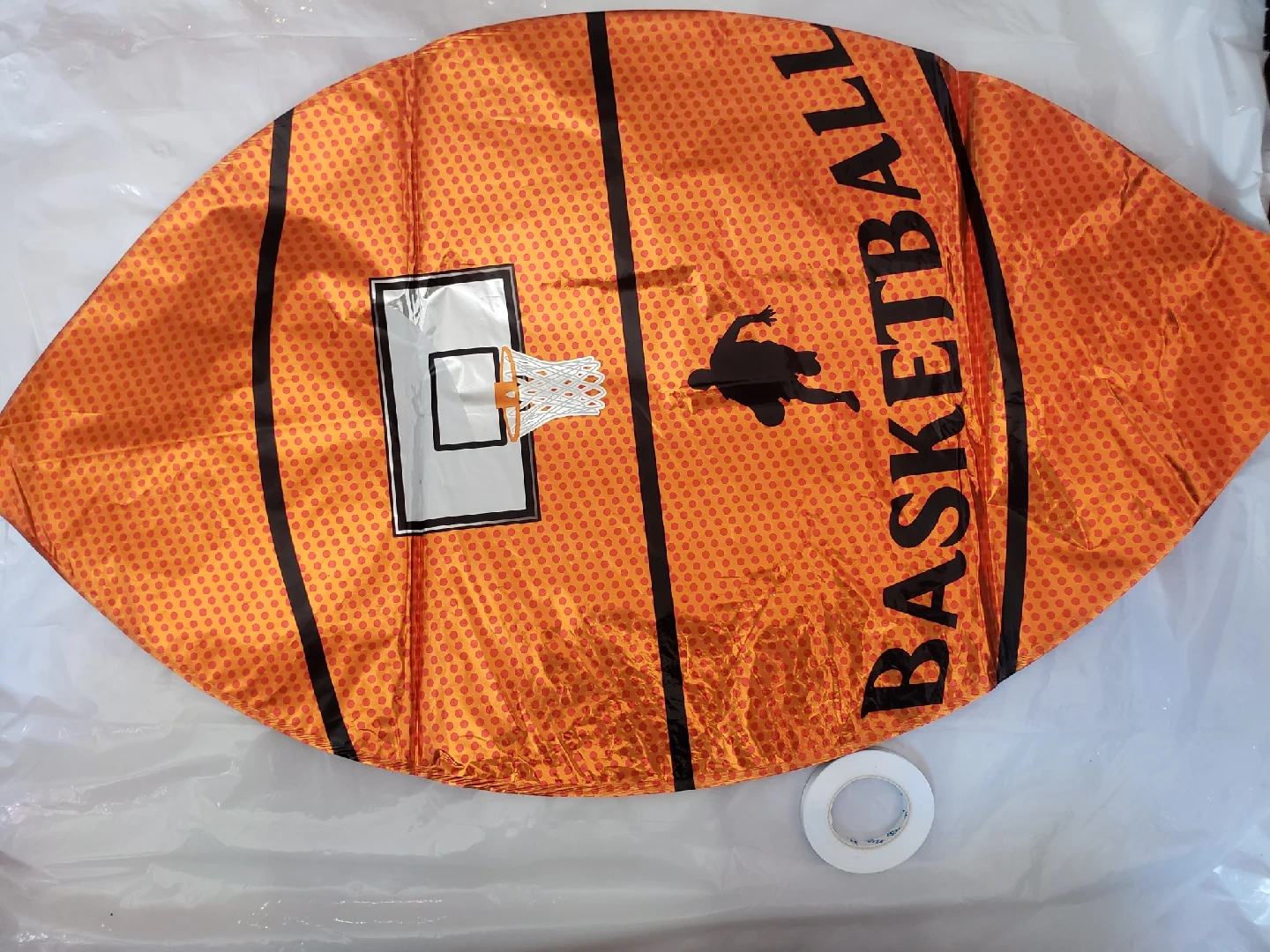 Check out this fun basketball-shaped foil balloon! It's perfect for parties or sports-themed events.