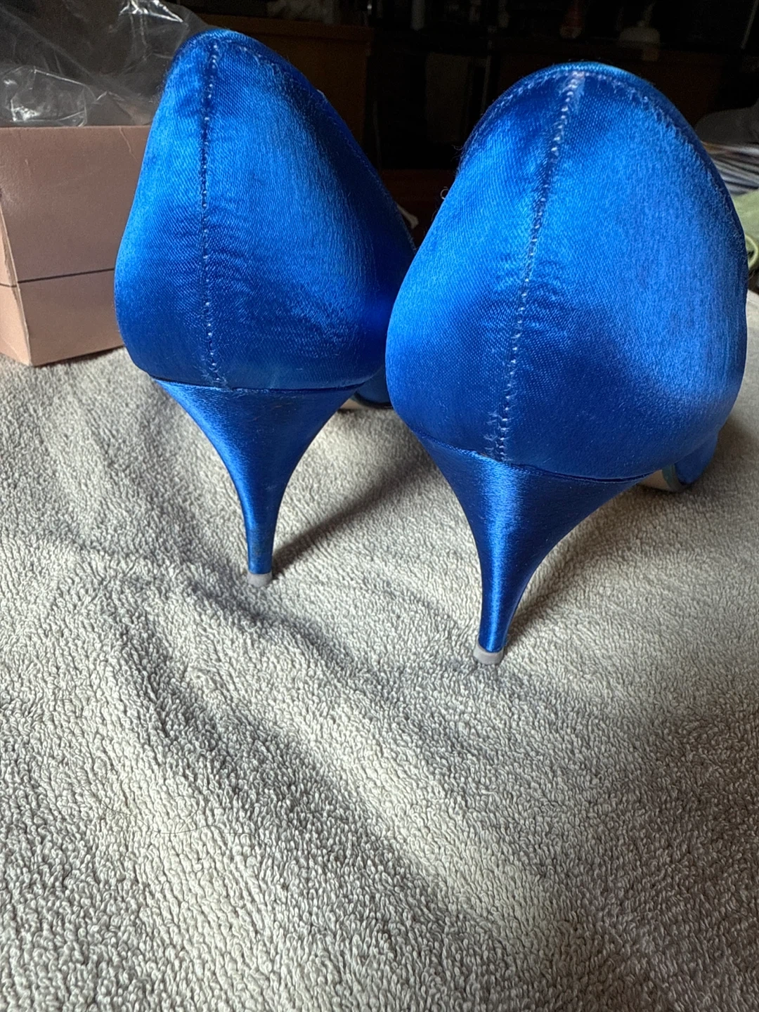 These vintage Tai Silk heels are a vibrant blue and in great condition! They come in their original box and are a size 9M. Perfect for adding a pop of colour to any outfit