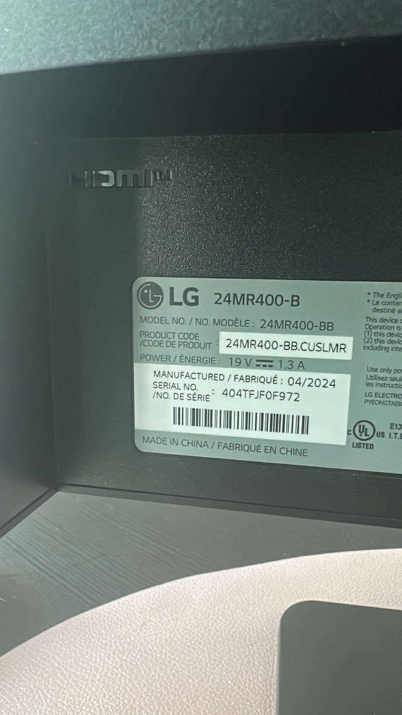 Selling an LG monitor. It's a 24-inch display that would be perfect for a home office or gaming setup. The manufacturing date is April 2024 and it is in excellent condition.