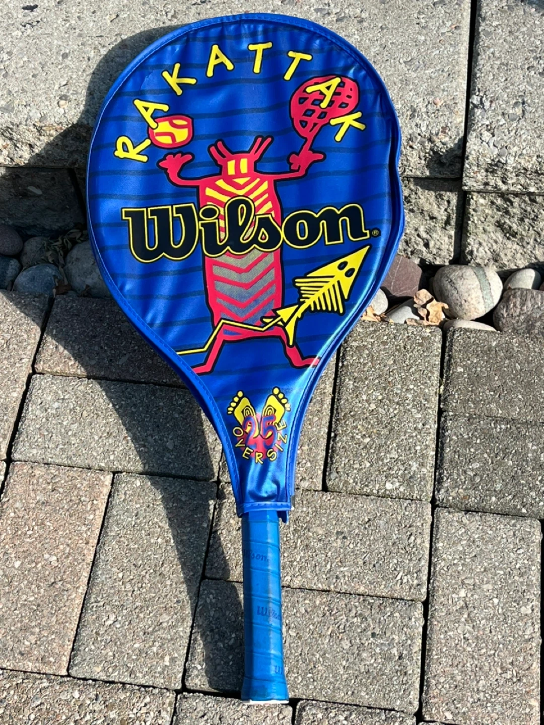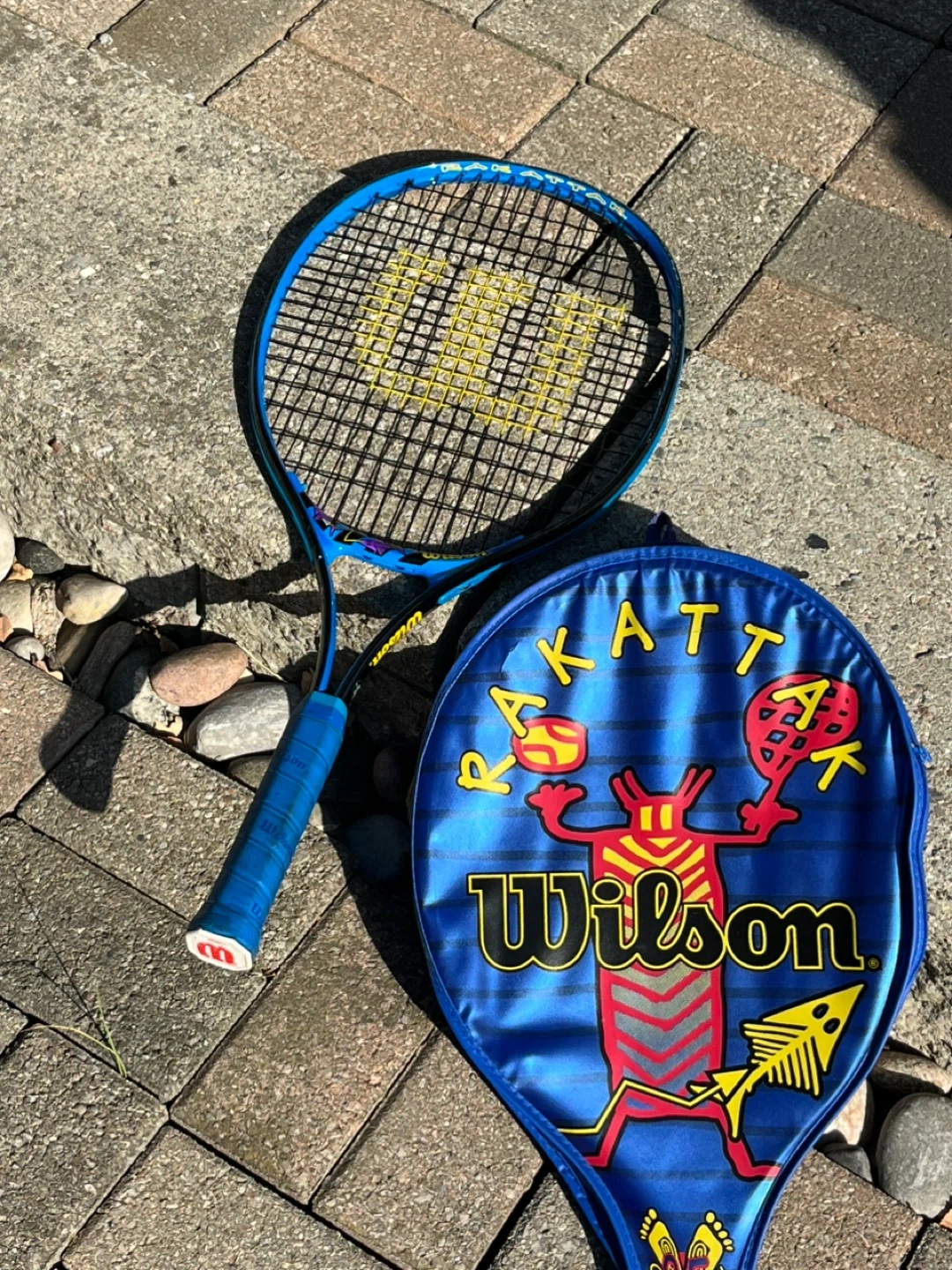 Selling a Wilson Rakatt oversize tennis racquet. It comes with its original cover, which has a fun and colourful design! The racquet itself is in good condition and ready for the court