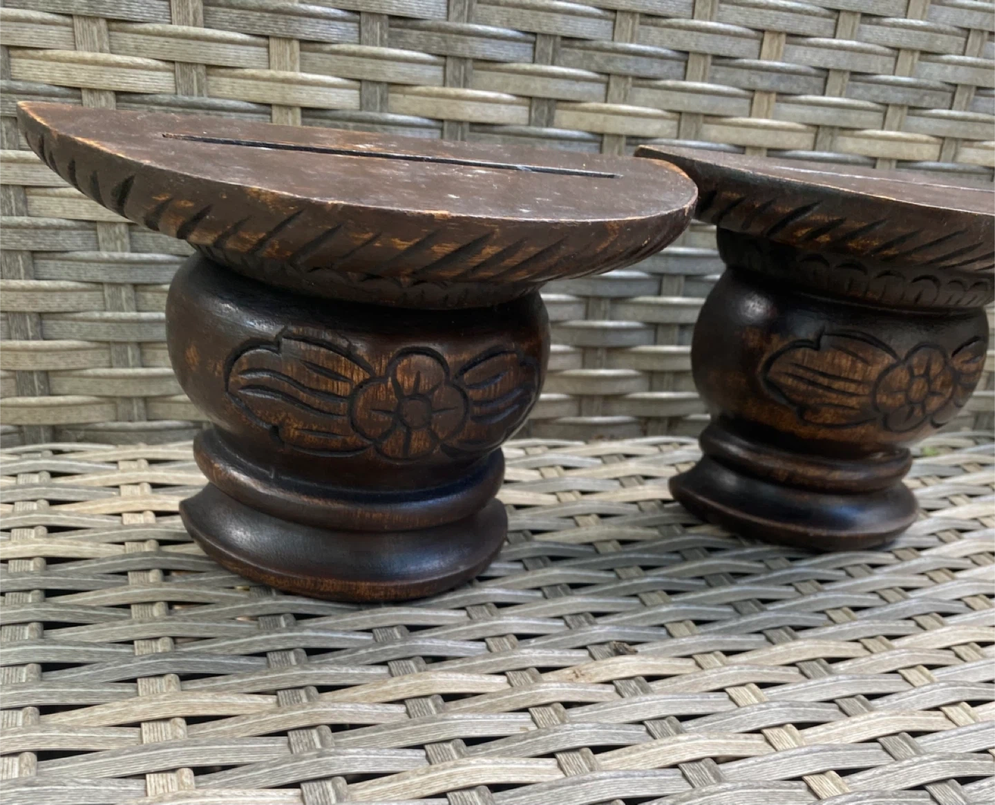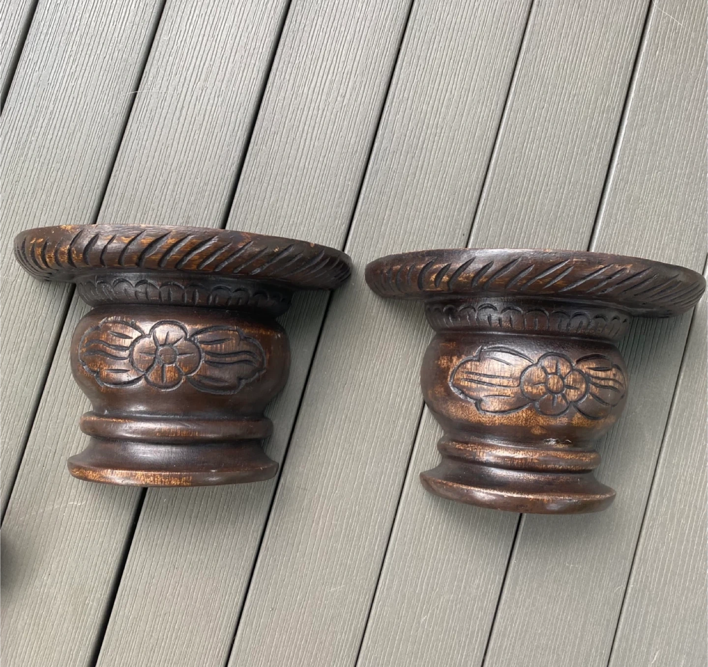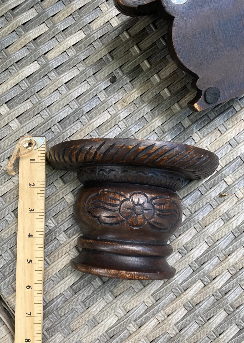 Pair Folk Art MCM Wood Carved Wall Shelves Brackets Sconces 7”W 4.5”T 3.5”D