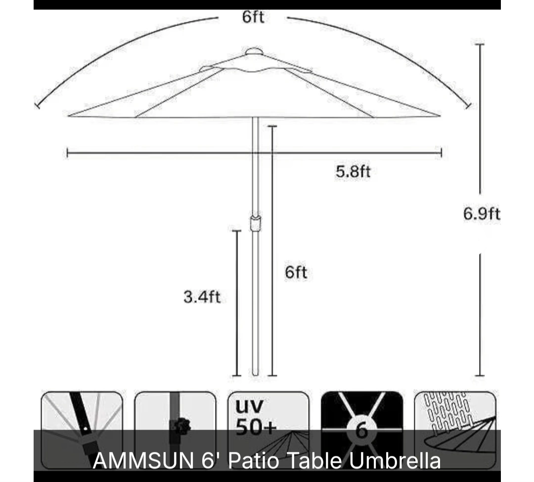 New AMMSUN 6ft Patio Umbrella – Color Tan Condition: New - (*some scuffs around the bottom of the pole from being in an umbrella stand as a floor model*) Retails for: $150 + Asking price: $80 (or make us an offer) ***All items are first come, first serve, all items are cross posted on other sites, we only HOLD items if you have paid for the item in full. ***Cash is preferred. Etransfer can be arranged. We can accept credit card payments via Square for in person transactions only. ***PICK-UP is preferred. Delivery might be possible for an extra fee, please ask us about this option. ***Our location is Courtice Ontario. The closest intersection is Trulls Road and Nash Road. ***Most of our items are discounted 50% or more off retail pricing!! Look at our other ads for more great deals. We post new items often, so be sure to check back often. About this product: - Add shade and comfort to your outdoor space with the AMMSUN 6ft Patio Umbrella in a stylish tan color. Designed with a durable steel pole and sturdy ribs, this umbrella is built to withstand daily use while providing long-lasting support. The push-button tilt function allows you to easily adjust the angle to block the sun at different times of the day, keeping you protected from harmful rays with its UPF 50+ sun protection. Perfect for use with patio tables, decks, gardens, backyards, or by the pool, this umbrella combines functionality with a classic look that complements any outdoor setting. Its compact 6ft size makes it easy to set up, move, and store, making it a practical choice for both small and large outdoor areas. ***Disclaimer: We sell personal items as well as auction, overstock, discontinued items and returns from Amazon, Wayfair and Walmart etc... All items are closely inspected prior to posting for sale. If you have any questions, please don't hesitate to message us as we would be happy to assist you with your decision to purchase an item. We try to honestly review all transactions, and we ask for an honest review in return. Buying and selling online can be very risky and dangerous so we all must take measures to keep safe and avoid scams. We currently take extra steps to operate safely for all monetary transactions and pick-up arrangements that are designed to keep you and us safe! Thank you so much for your interest. Stay safe & keep thrifting Friends!!! Keywords: patio umbrella, outdoor umbrella, garden umbrella, backyard umbrella, deck umbrella, poolside umbrella, table umbrella, 6ft umbrella, tan patio umbrella, sun shade umbrella, outdoor shade, lawn umbrella, adjustable tilt umbrella, steel pole umbrella, UPF 50 umbrella