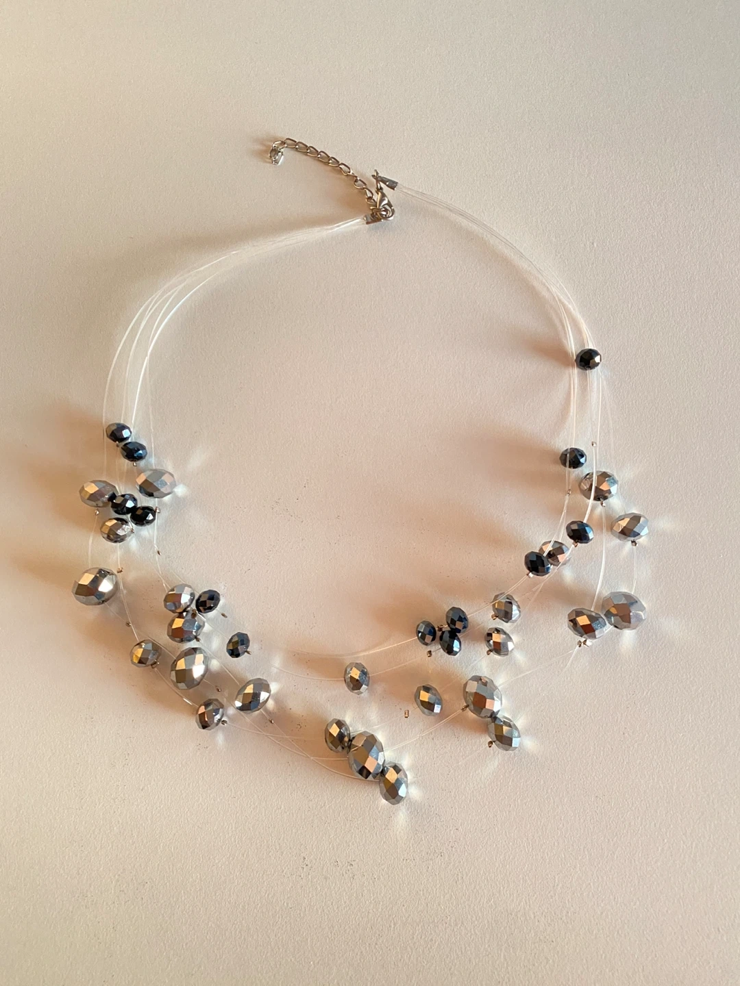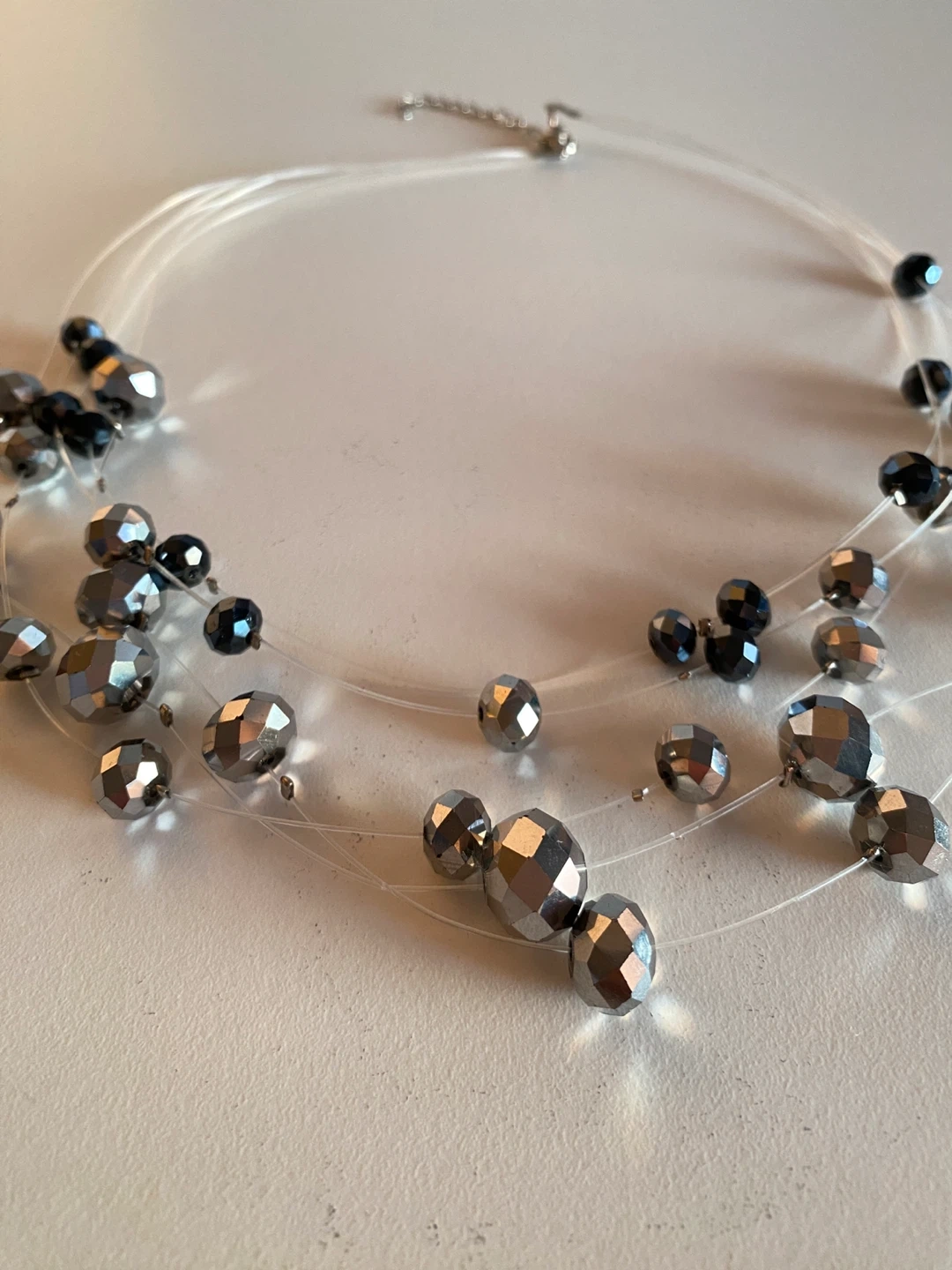 Elegant floating beads necklace that reflect light beautifully, due to invisible thread it looks really classy and goes with every outfit