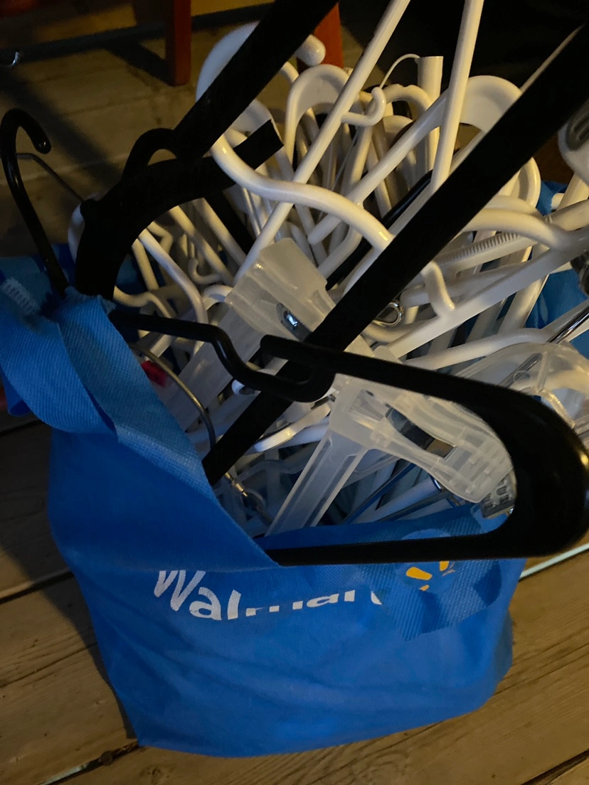 A mixed lot of clothes hangers in black and white. They’re in great condition - they just don’t all match and we finally got matching ones Pickup Jane and st Clair only