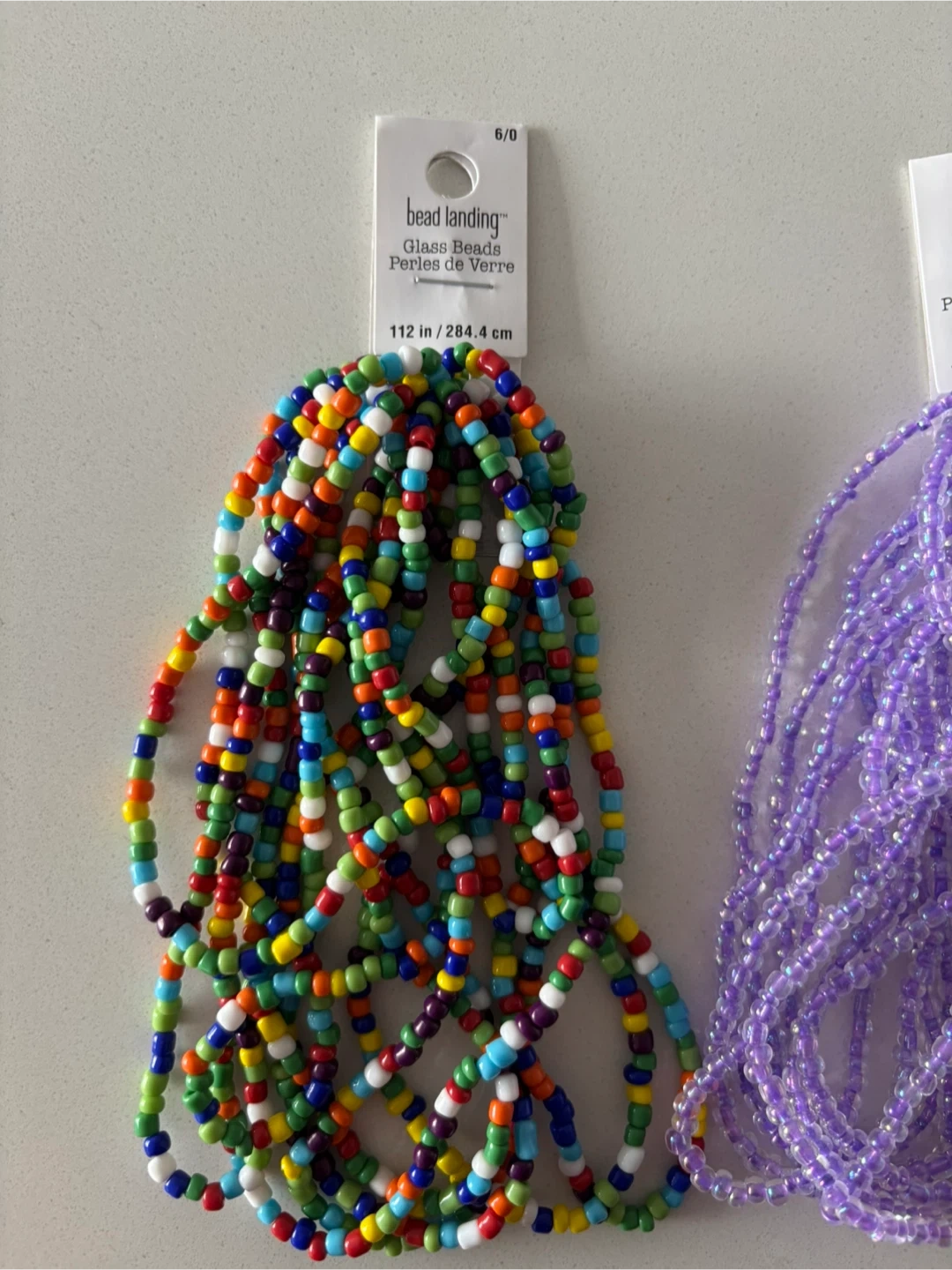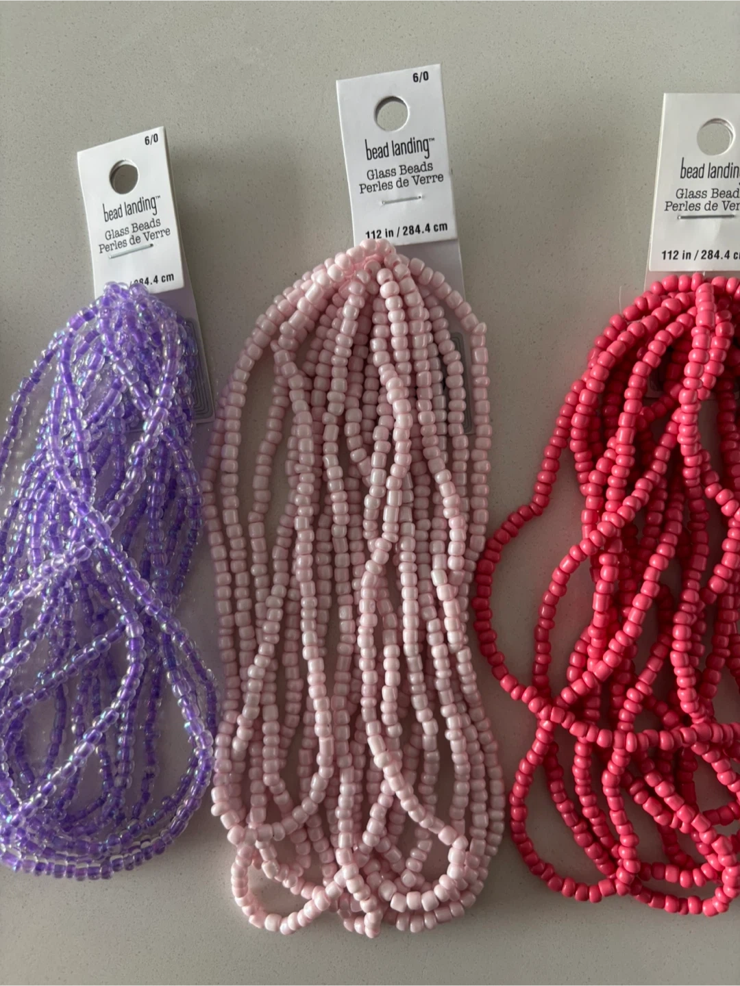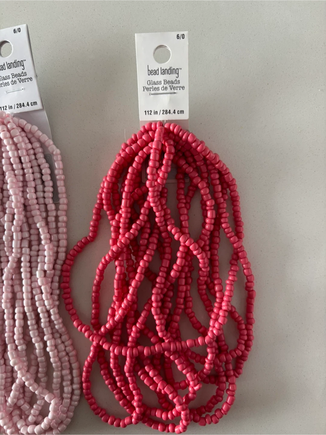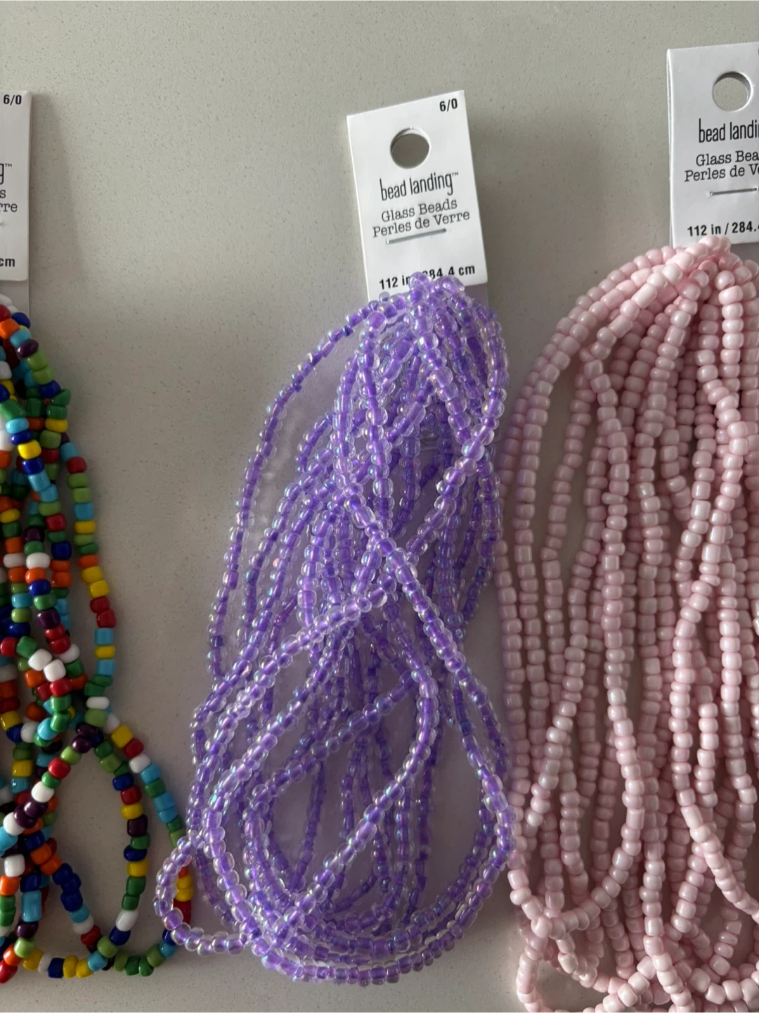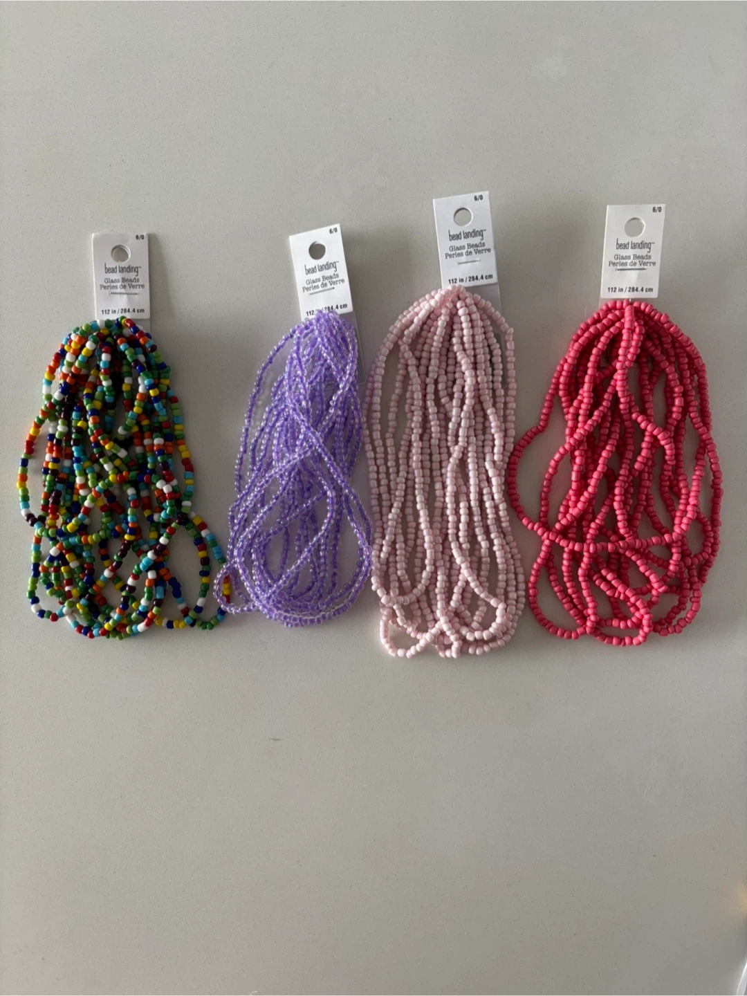 Selling strands of Bead Landing glass beads! They're 112 inches (284.4 cm) in length and come in a variety of colours, including purple, pink, red, and multicoloured Make beautiful beaded accessories and accents with these bright seed beads. Available in a variety of colours, they're ideal for passionate jewellery-makers, and the creative possibilities are endless. Each retails approx $8 each at Michael’s