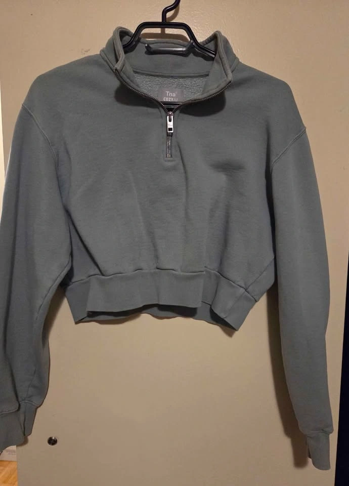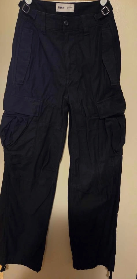 TNA surplus division black cargo pants size 00 TNA cozy fleece perfect grey hoodie size small TNA CozyAF cropped 1/4 zip in quicksilver blue size small $50 for all 3 items!