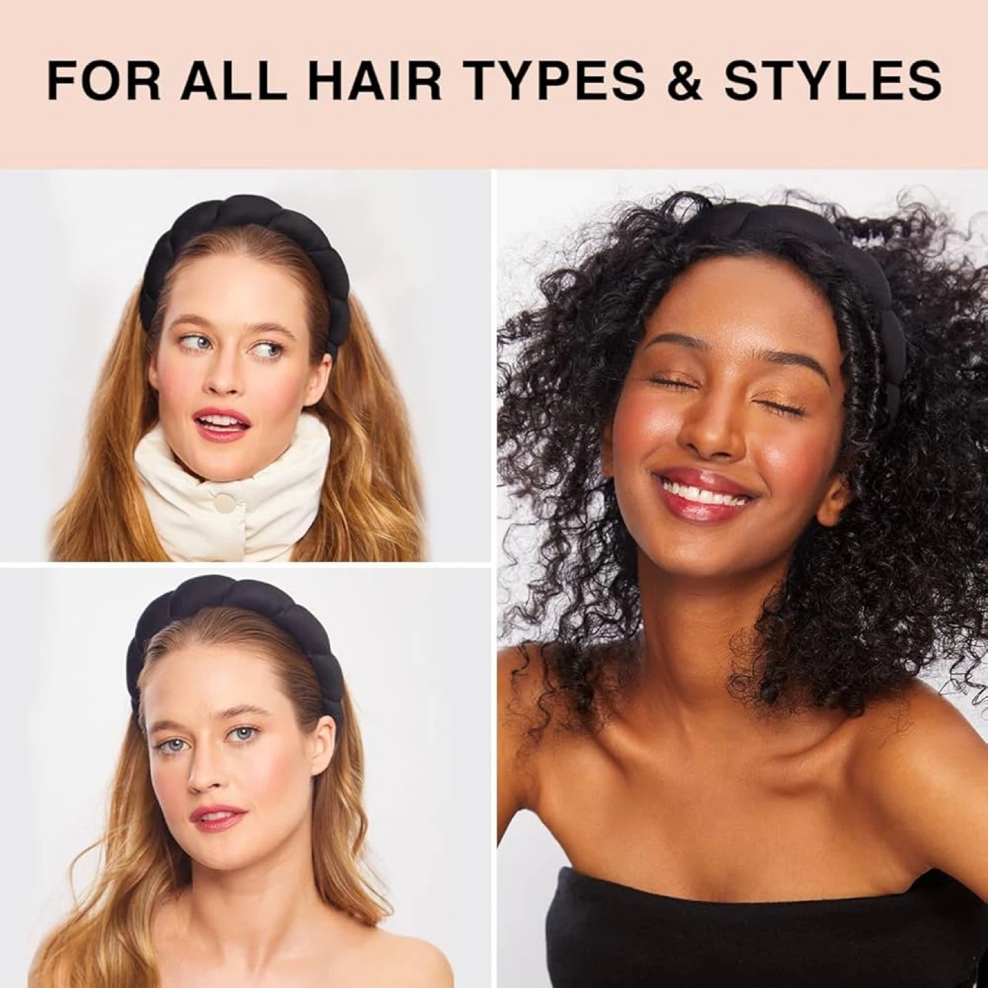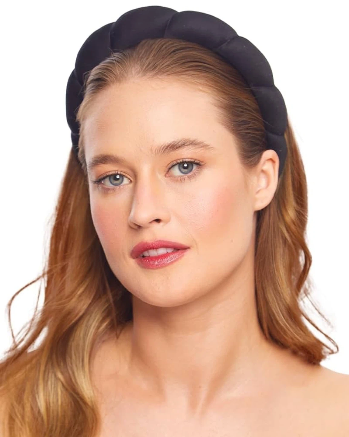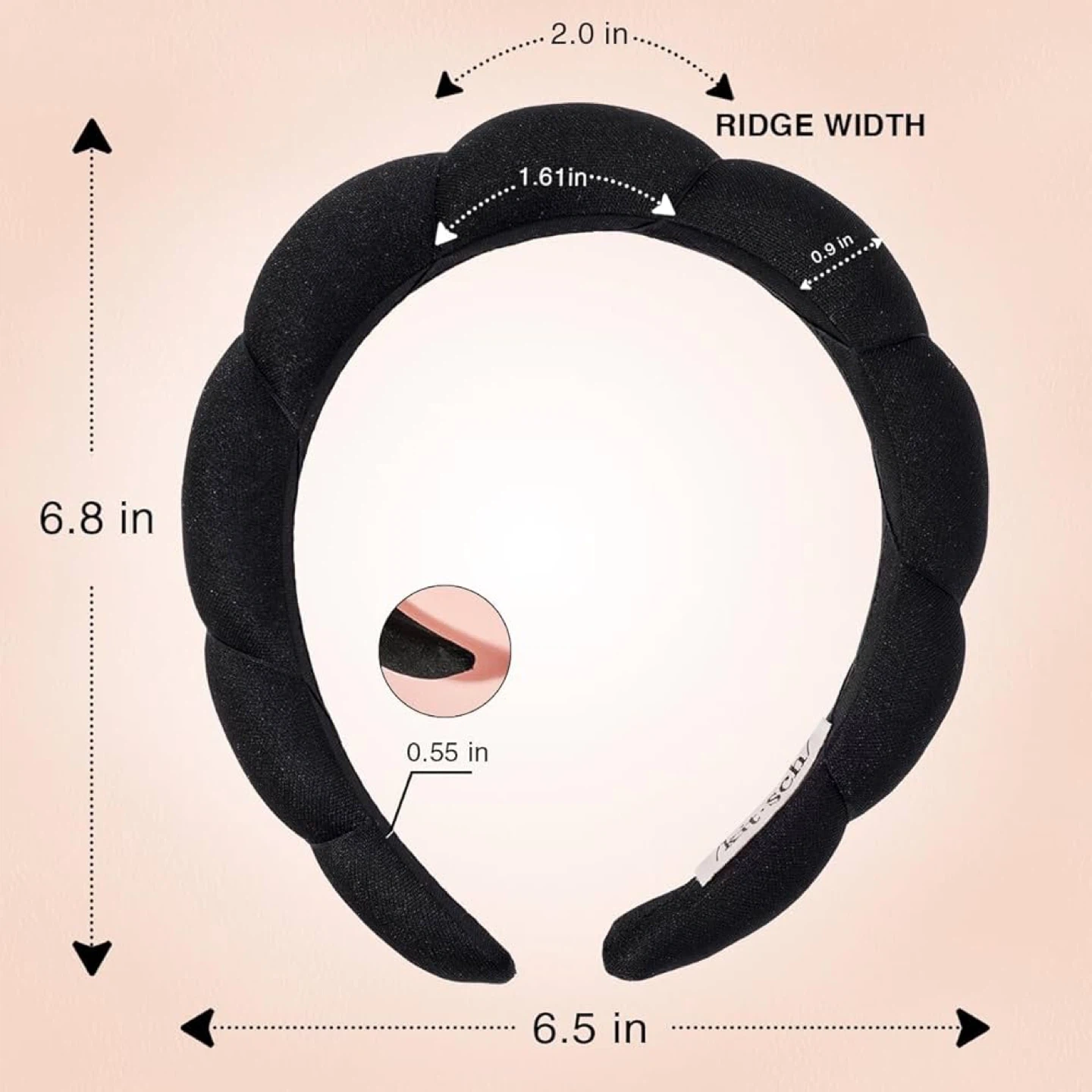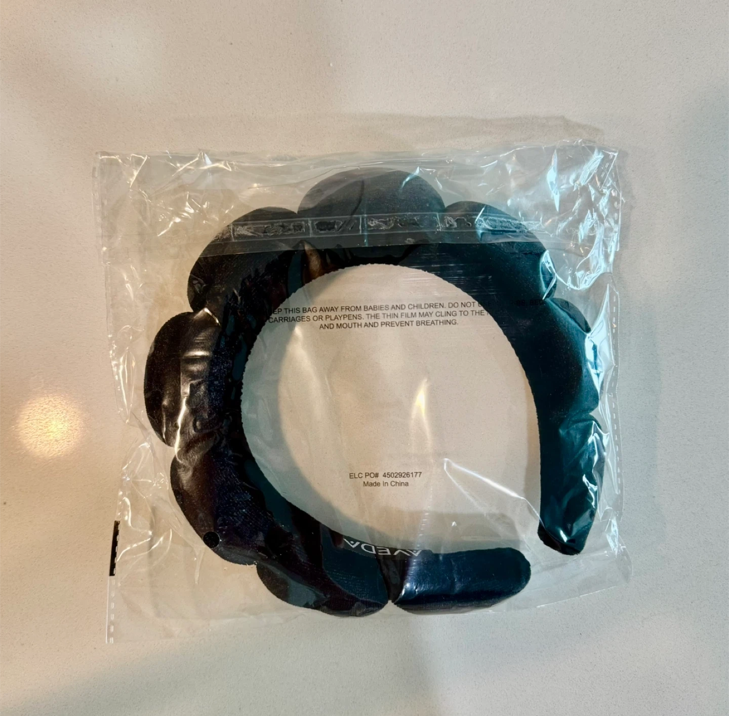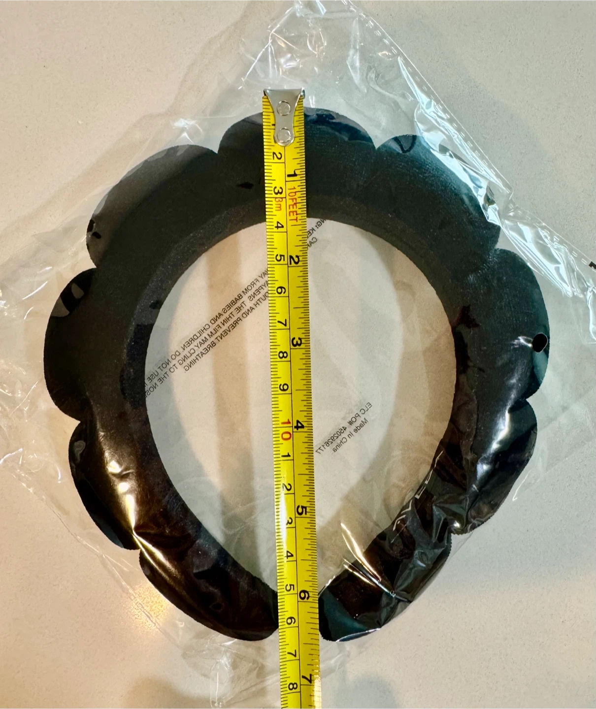 AVEDA Black Fabric Headband Add a touch of style to any hairstyle with this AVEDA headband! It features a stylish scalloped design and is made of fabric. The headband is black and measures approximately 6.8 inches in height and 6.5 inches in width