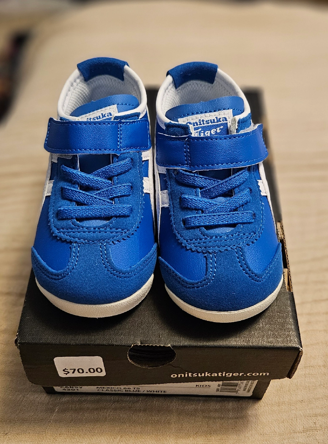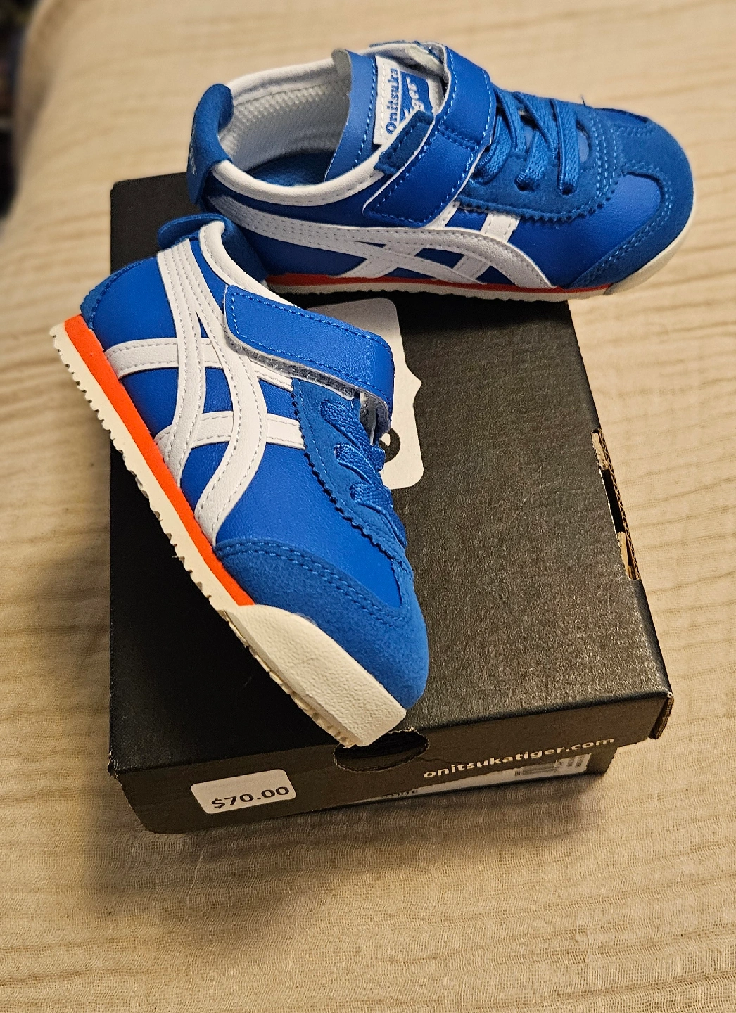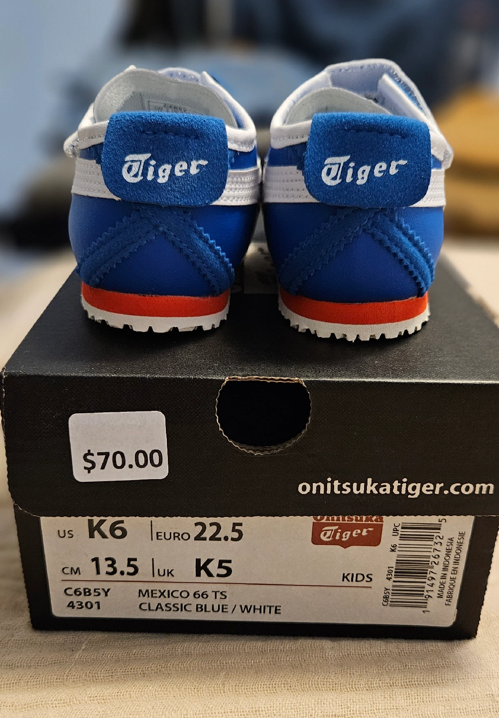 Onitsuka Tiger Mexico 66 TS kids shoes are brand new and ready for a new home! They come in a vibrant classic blue and white colourway. The size is K6 (US). They come with the original box and were originally bought for $70. Perfect for your little one! Available in K4 k8 Sold
