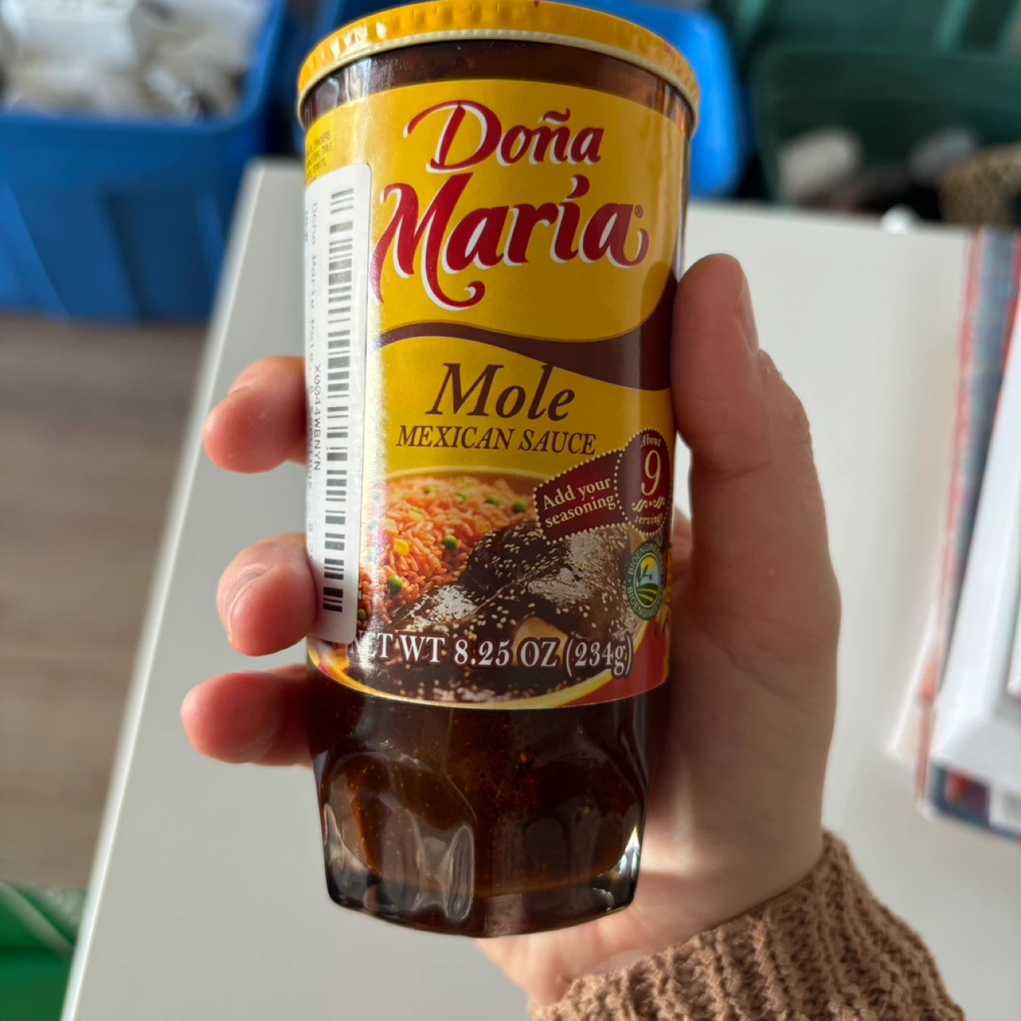 Selling a jar of Dona Maria Mole Mexican Sauce. It's an 8.25 oz (234g) jar. The best before date is June 2026. Add your seasoning! Purchased for $19 after tax