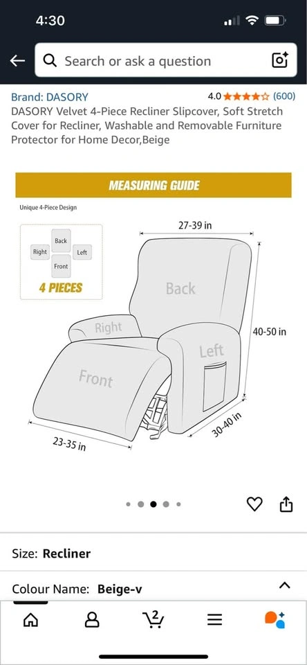 BNIB SF PF home Amazon link - DASORY Velvet 4-Piece Recliner Slipcover, Soft Stretch Cover for Recliner, Washable and Removable Furniture Protector for Home Decor,Beige