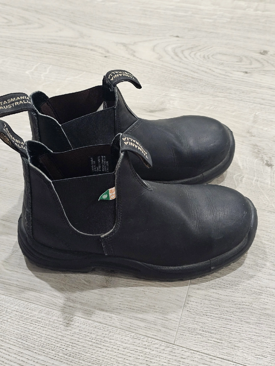Selling a pair of Blundstone 163 safety boots in great condition! They're a size 7 in women and size 5 in mens. Features a sleek black design. Perfect for work and keep your feet free from punctures!