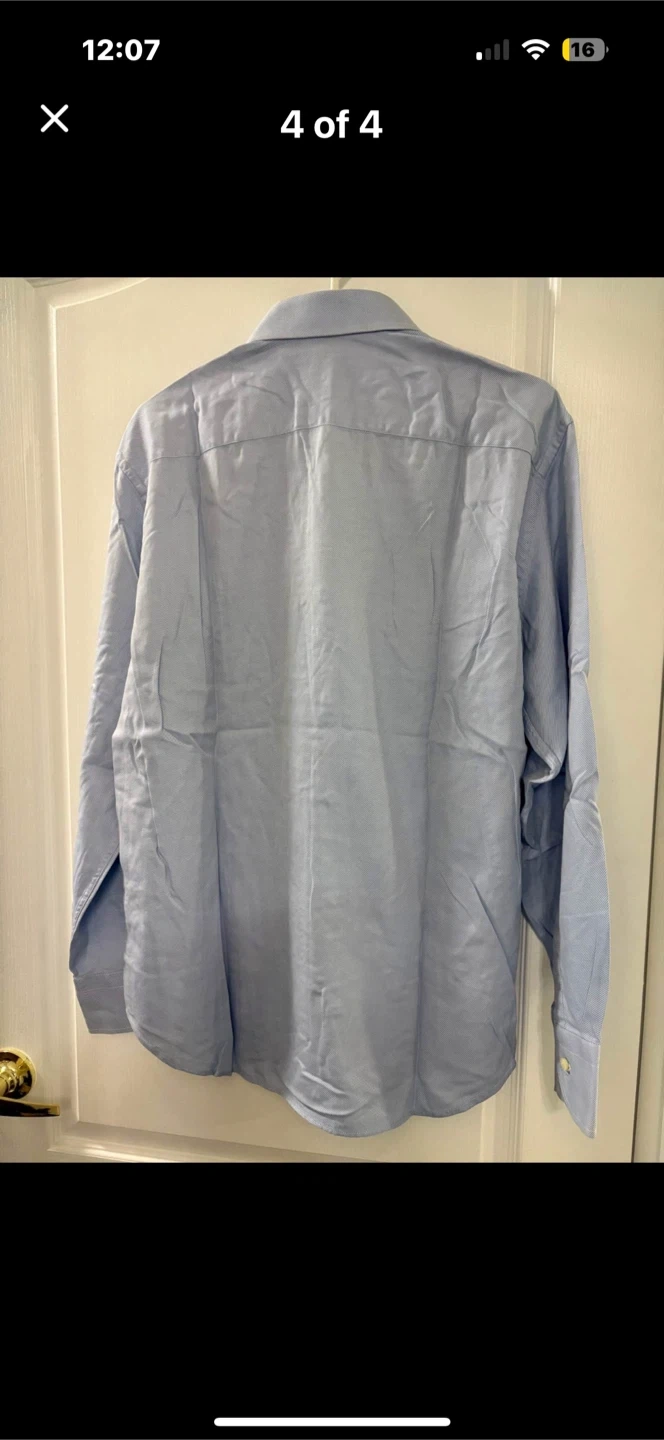 Selling a Vaturi dress shirt in size 17/43 or L/XL. It's a light blue colour with a subtle striped pattern. Perfect for business or casual wear! Pickup in Brampton📍 Please checkout my other listings ℹ thanks 😊
