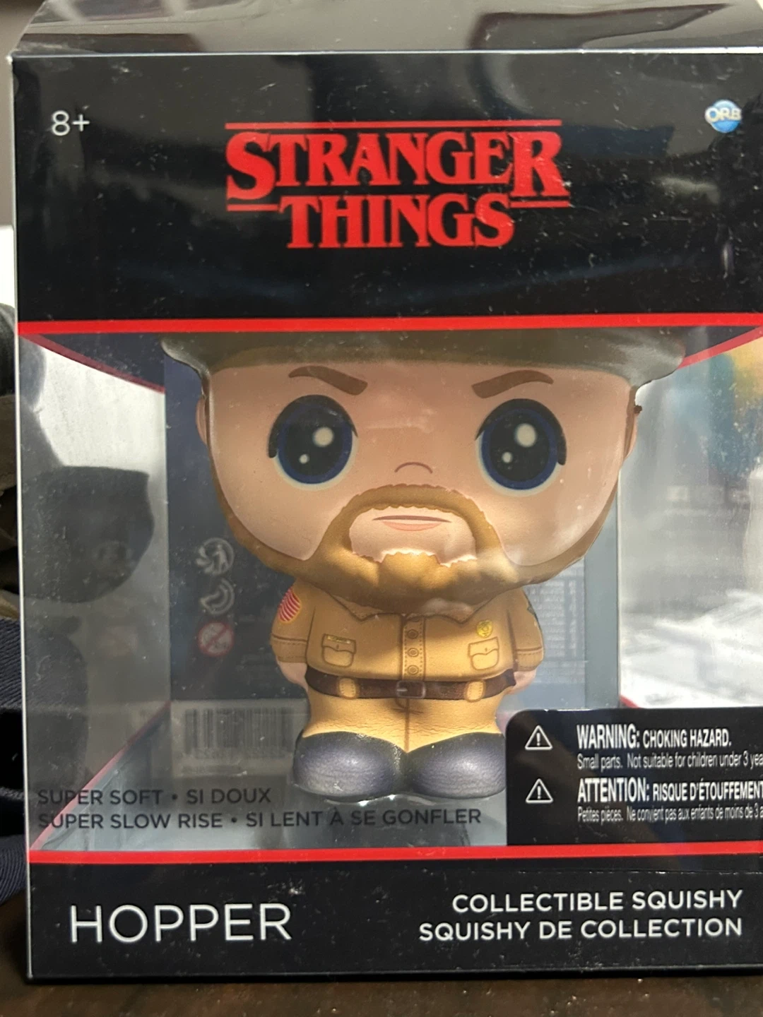 Selling a brand new, in box, Stranger Things Hopper collectible squishy! Like new, never been taken out the box, the squishy is untouched!