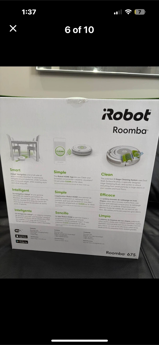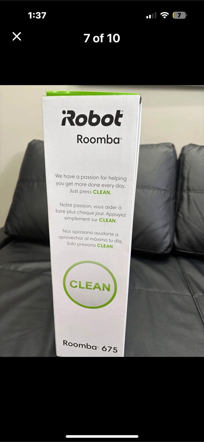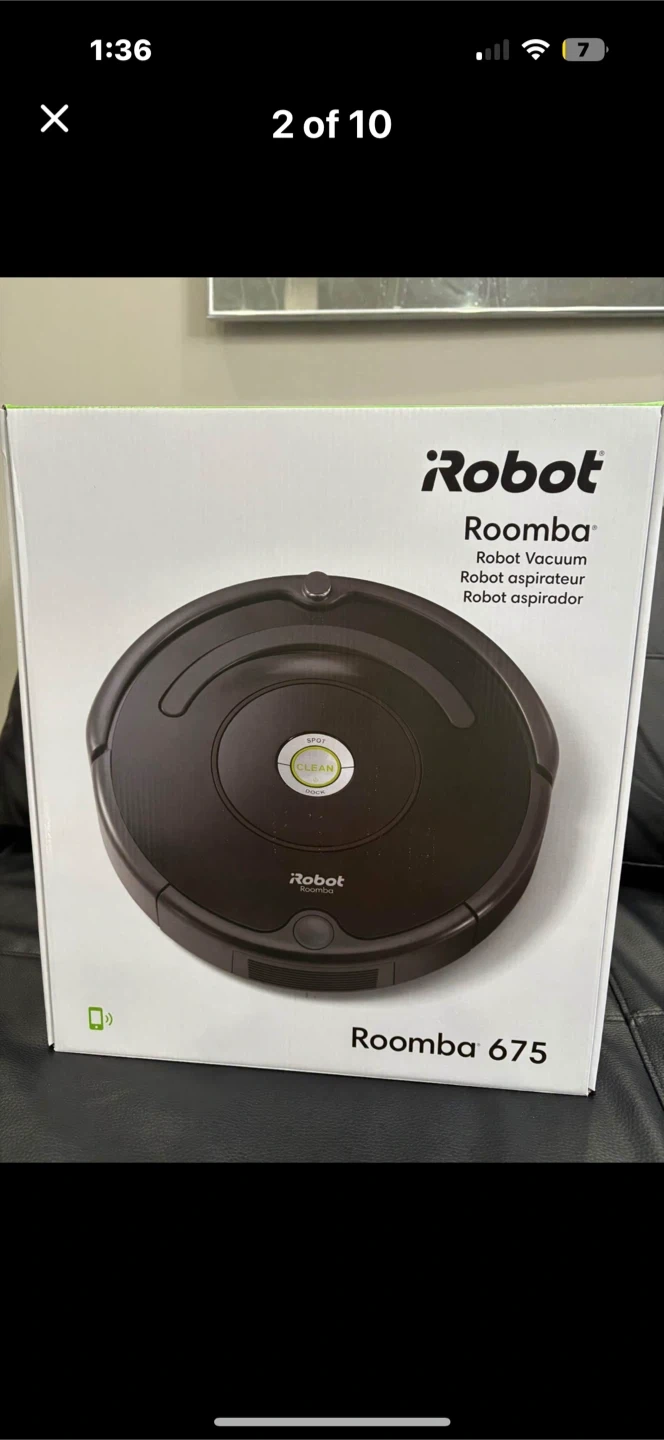 Selling an iRobot Roomba 675. It's a smart, simple, and effective way to keep your floors clean. It is designed to live with you, cleaning your floors and carpets with ease iRobot Roomba 675 Wi-fi connected Robot π€ Vacuum in box with 1 extra filter, home base charging station line cord. Tha iRobot Home App lets you clean and schedule conveniently anytime, anywhere or just press clean on the robot. Perfect for pet hair, portable, quiet. Good for both carpet and hardwood floors. Easy to clean. Pickup in Brampton π Please check out my other listings βΉοΈ thanks π