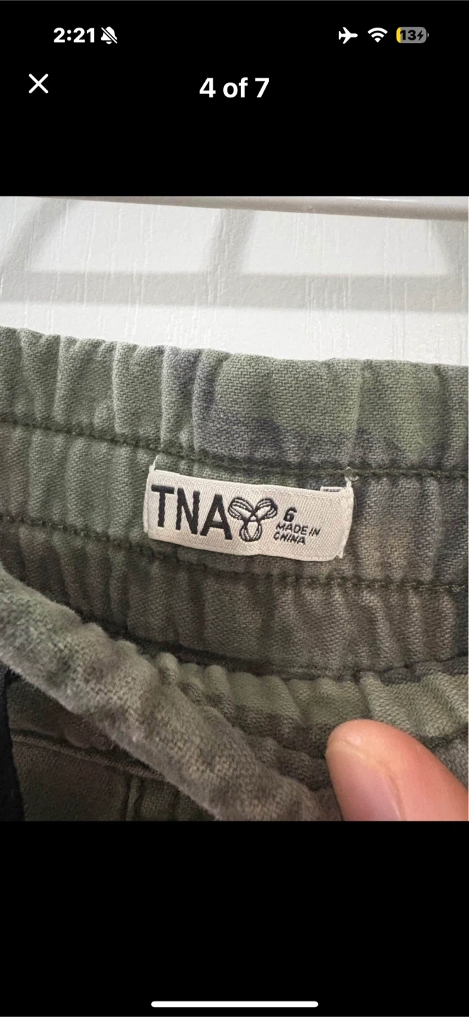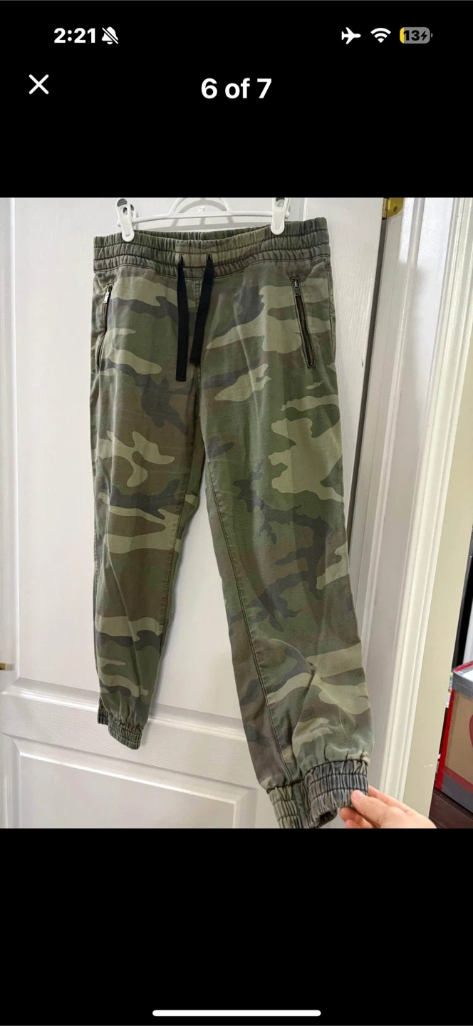 Selling a pair of TNA camo joggers in size 6. They feature a comfortable elastic waistband with a drawstring and zippered pockets. Perfect for casual wear! Pickup in Brampton📍 Please checkout my other listings ℹ thanks 😊