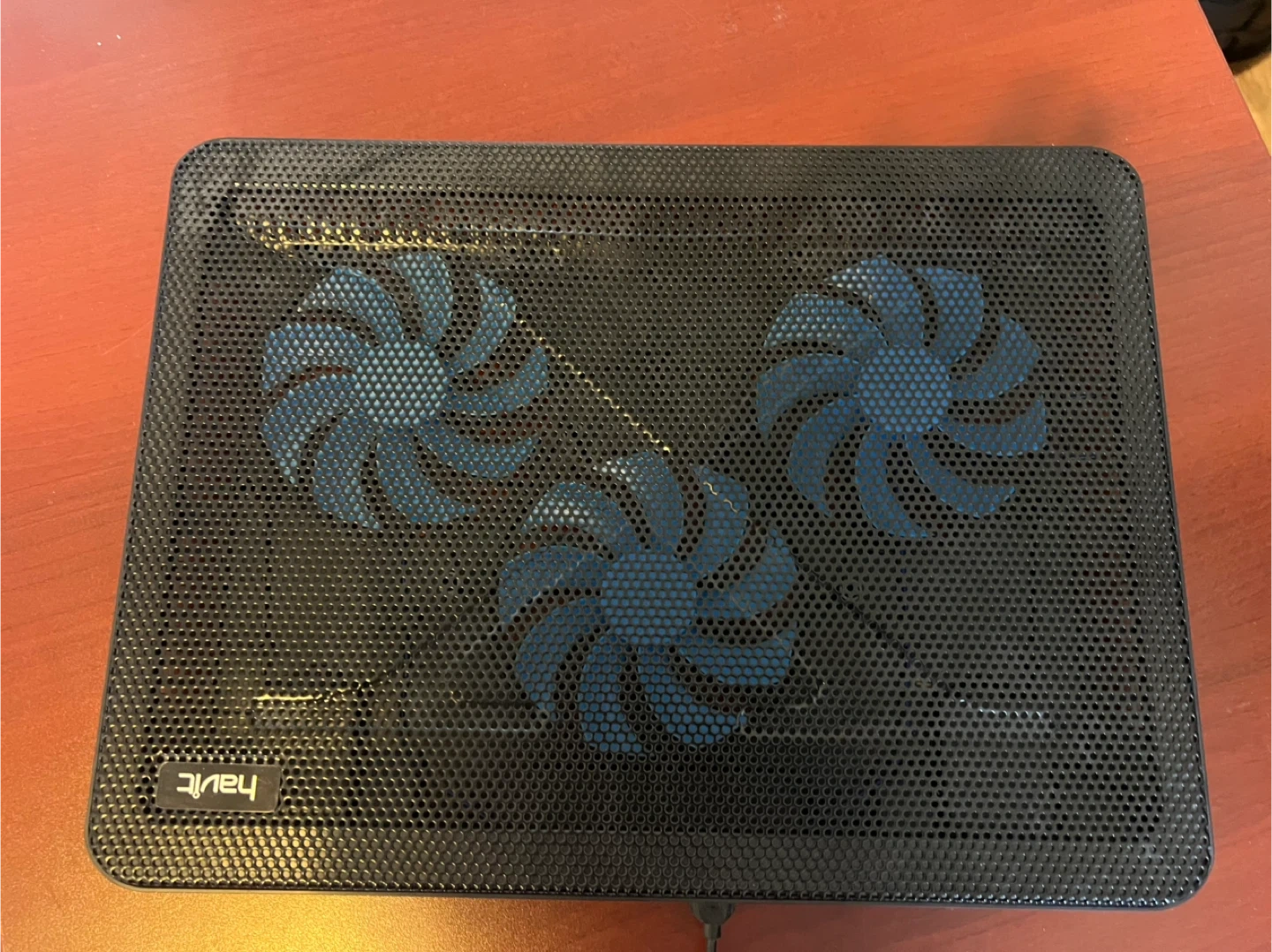 Keep your laptop cool with this Havit cooling pad! Only used a few times. It features three blue fans to help dissipate heat and prevent overheating. Perfect for gaming or long work sessions!