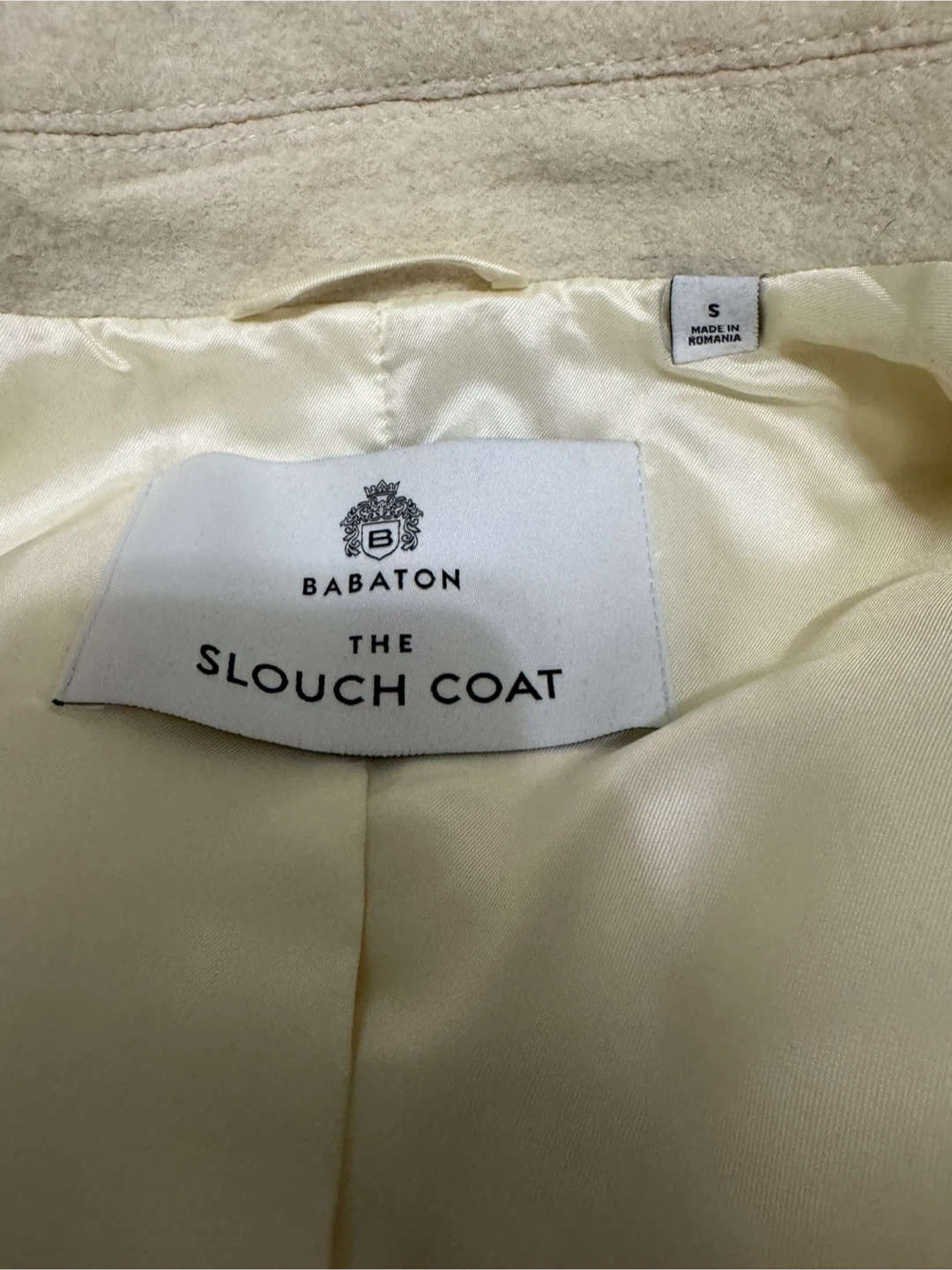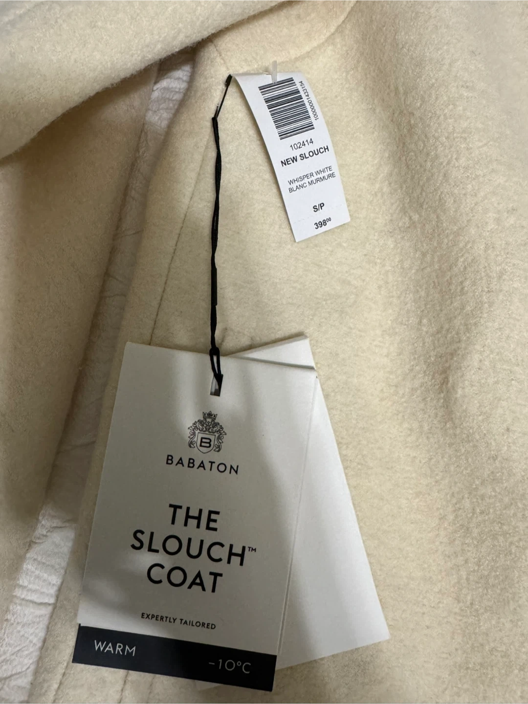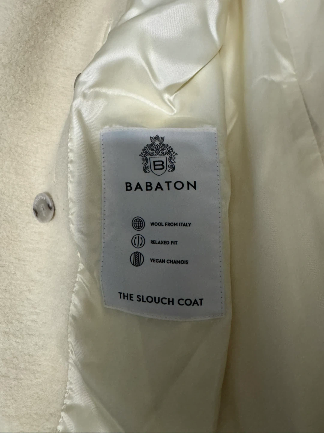 Selling a Babaton The Slouch Coat in Whisper White, size small. This coat is expertly tailored and made with wool from Italy. Brand new never work tags still on. Originally bought for $398