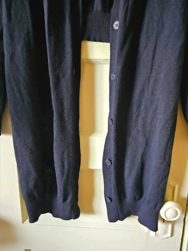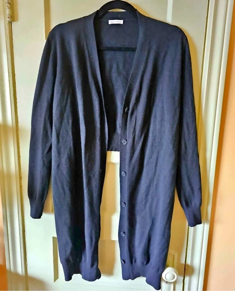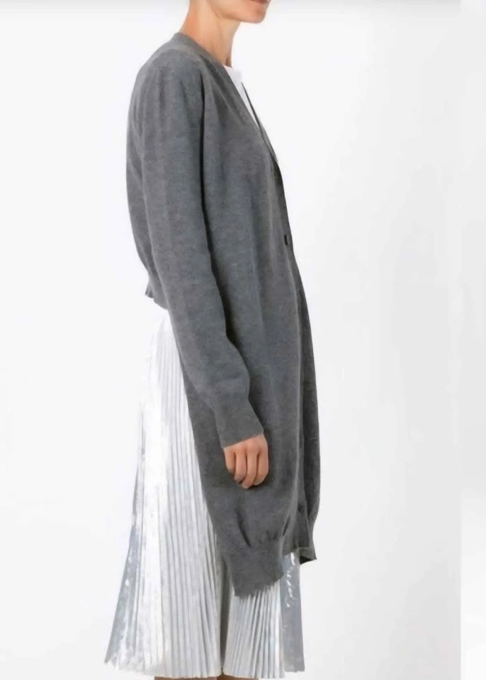 Gorgeous high end Italian designer cardigan from renowned luxury designer Thomas Maier, made in Italy of 100% cashmere. This unique piece features an extreme high low style, with a long front that can be buttoned, and a cropped back that hits the natural waist. Cozy, ultra soft and ultra warm. Cardigan is in new without tag condition, and has never been worn, only tried on. Retail value is around $1800. Front measures about 34.5" from shoulder to hem, and back measures about 17" from shoulder to hem. Sleeve length measures about 19", and pit to pit measures about 19.5". Marked a size 0 but could fit up to a size 4 if you want it to fit more snugly.