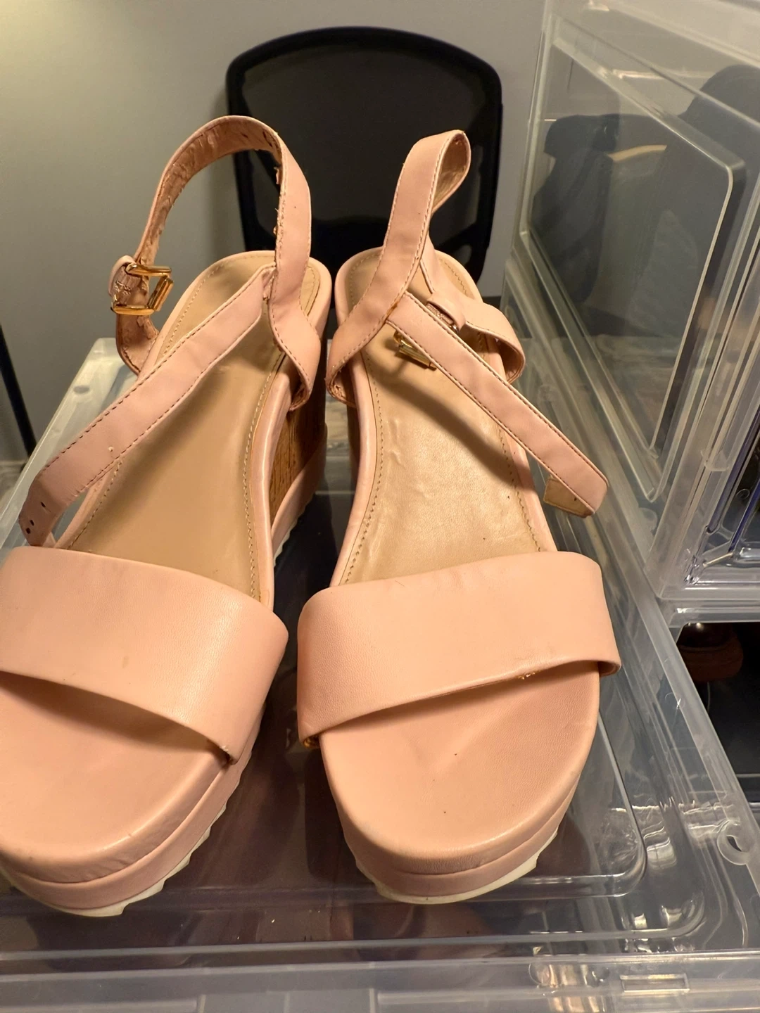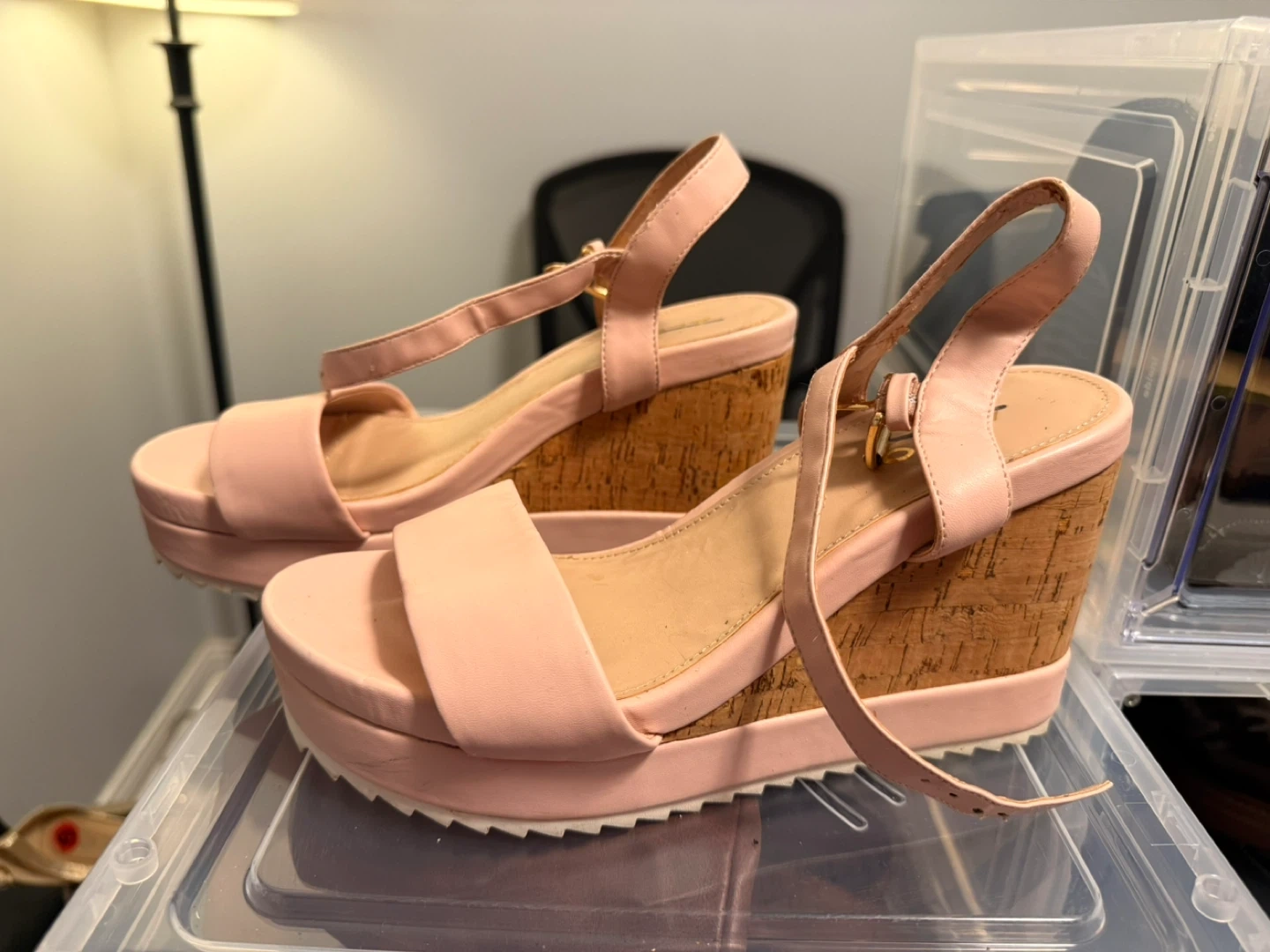 Cute pink wedge sandals in great condition! They feature a platform sole and an ankle strap. Perfect for adding a little height and style to any outfit. Used gently