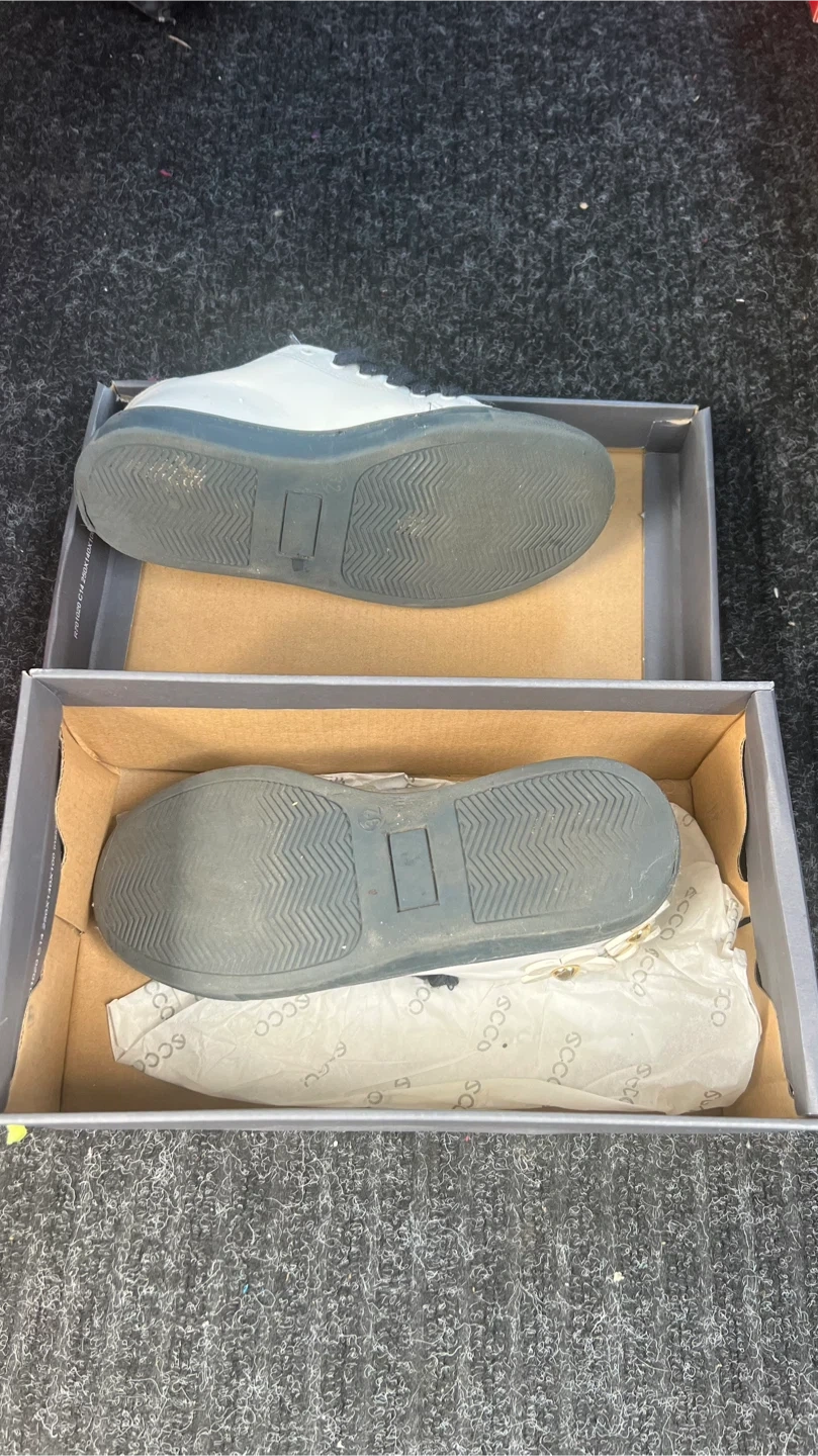 Selling a pair of Ecco Biom Trail Kids sneakers in size 10-10.5 US. These white sneakers are in good condition and come with the original box. Perfect for your little one's adventures!