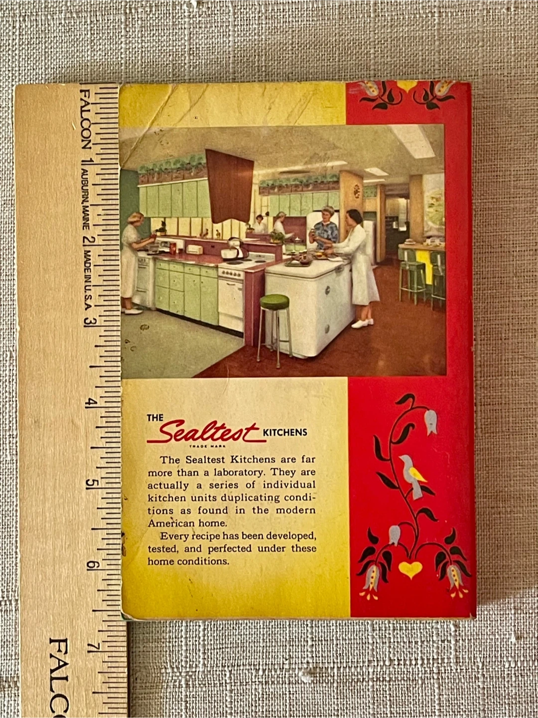Selling a vintage paperback cookbook titled '641 Tested Recipes from the Sealtest Kitchens'! It's a cool piece of kitchen history from 1954 with lots of recipes from the Sealtest Kitchens. Very good condition with clean pages and tight spine.