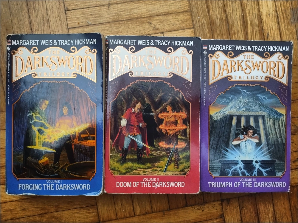 Selling the complete Darksword Trilogy by Margaret Weis and Tracy Hickman! This set includes: - Forging the Darksword (Volume I) - Doom of the Darksword (Volume II) - Triumph of the Darksword (Volume III) Dive into this epic fantasy series!
