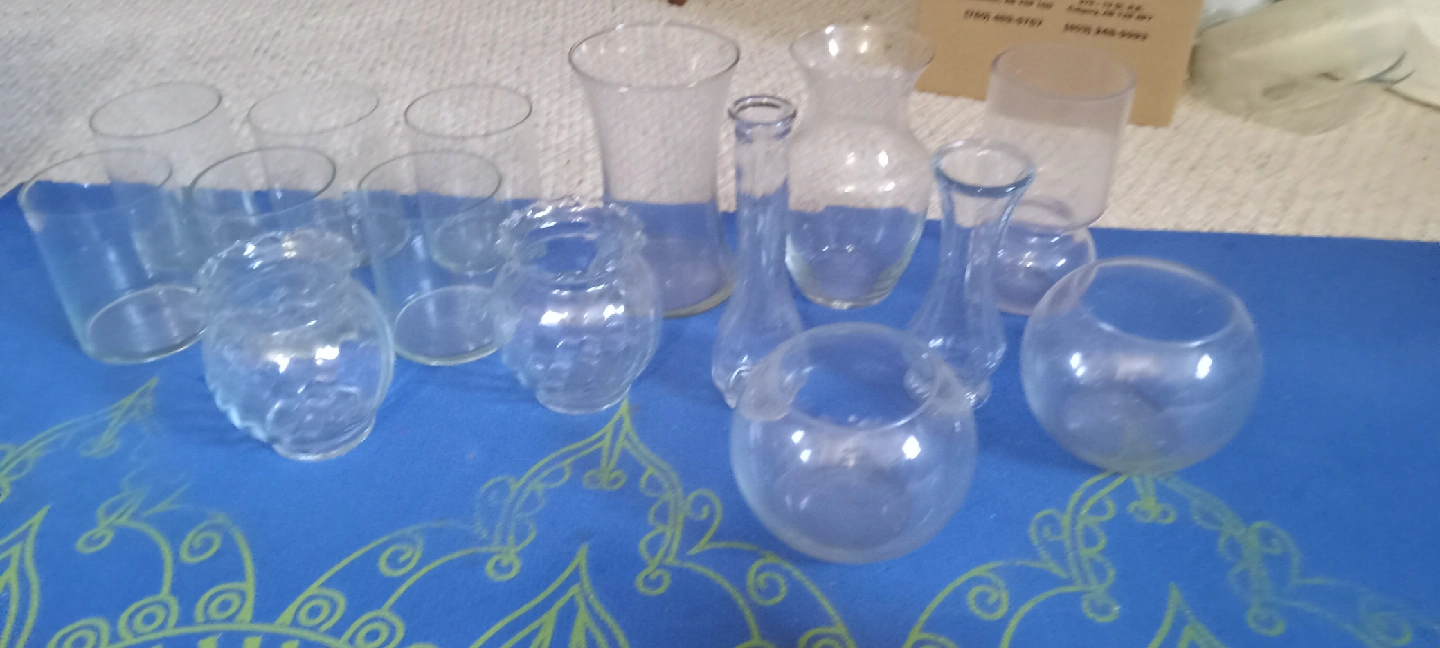 Selling a collection of clear glass vases! There's a variety of shapes and sizes, perfect for different floral arrangements or decorative purposes. They're all in great condition and ready to brighten up your space. They were lying in the garage so needs to clean a bit.