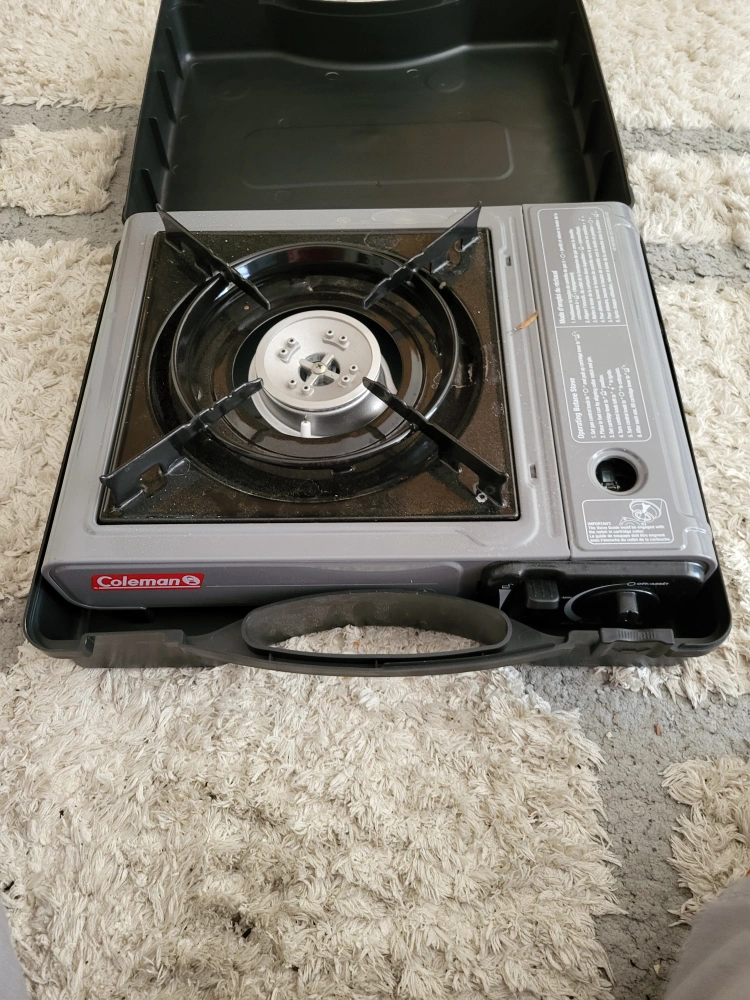 Selling a portable Coleman butane stove! It's in good condition and comes with its carrying case. Perfect for camping or cooking outdoors.