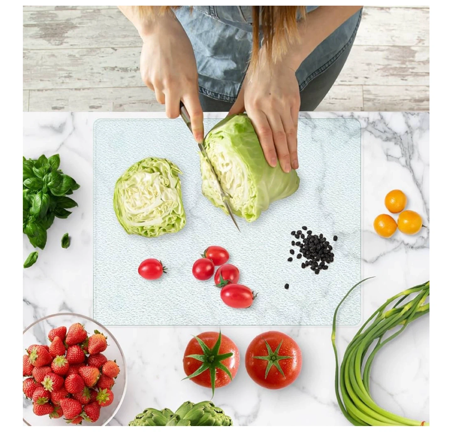 *CASH Only* Brand New Selling a glass cutting board, perfect for any kitchen! It measures 16 inches by 12 inches. It's easy to clean and has non-slip feet to keep it in place while you're chopping up your veggies [Check Out My Other Listings]