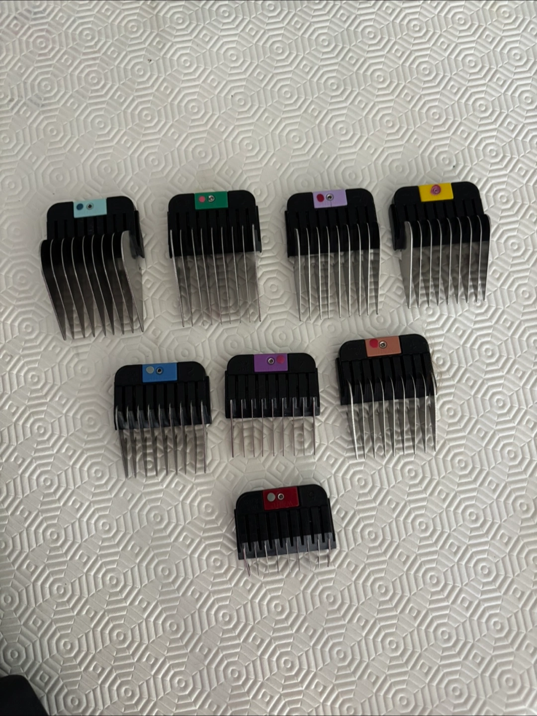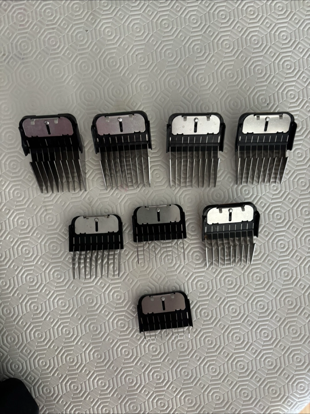 Selling a set of hair clipper guards. There are 8 guards in total. They come in a clear plastic storage case. Great for keeping your grooming tools organized! In very good condition. Use with any brand #10 #15 #30 blade.