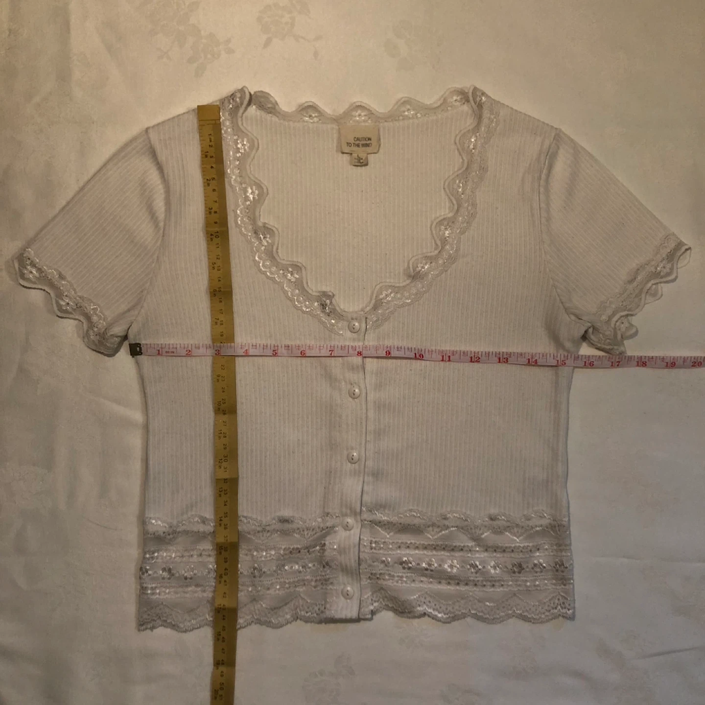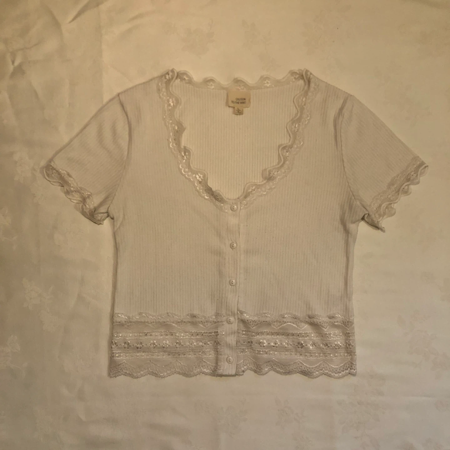 Coquette cream white blouse with lace accents. Features button-up front. Perfect for versatile styling. Very cutesy and fun! $10 OBO