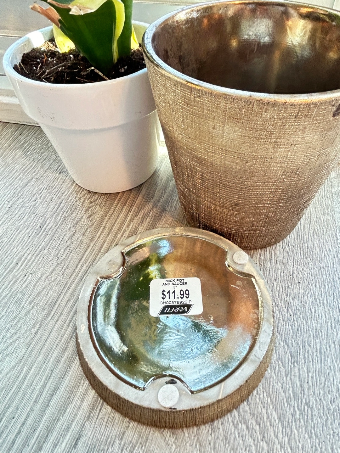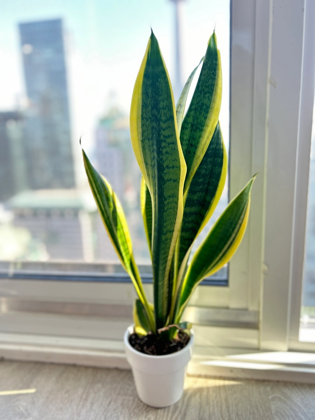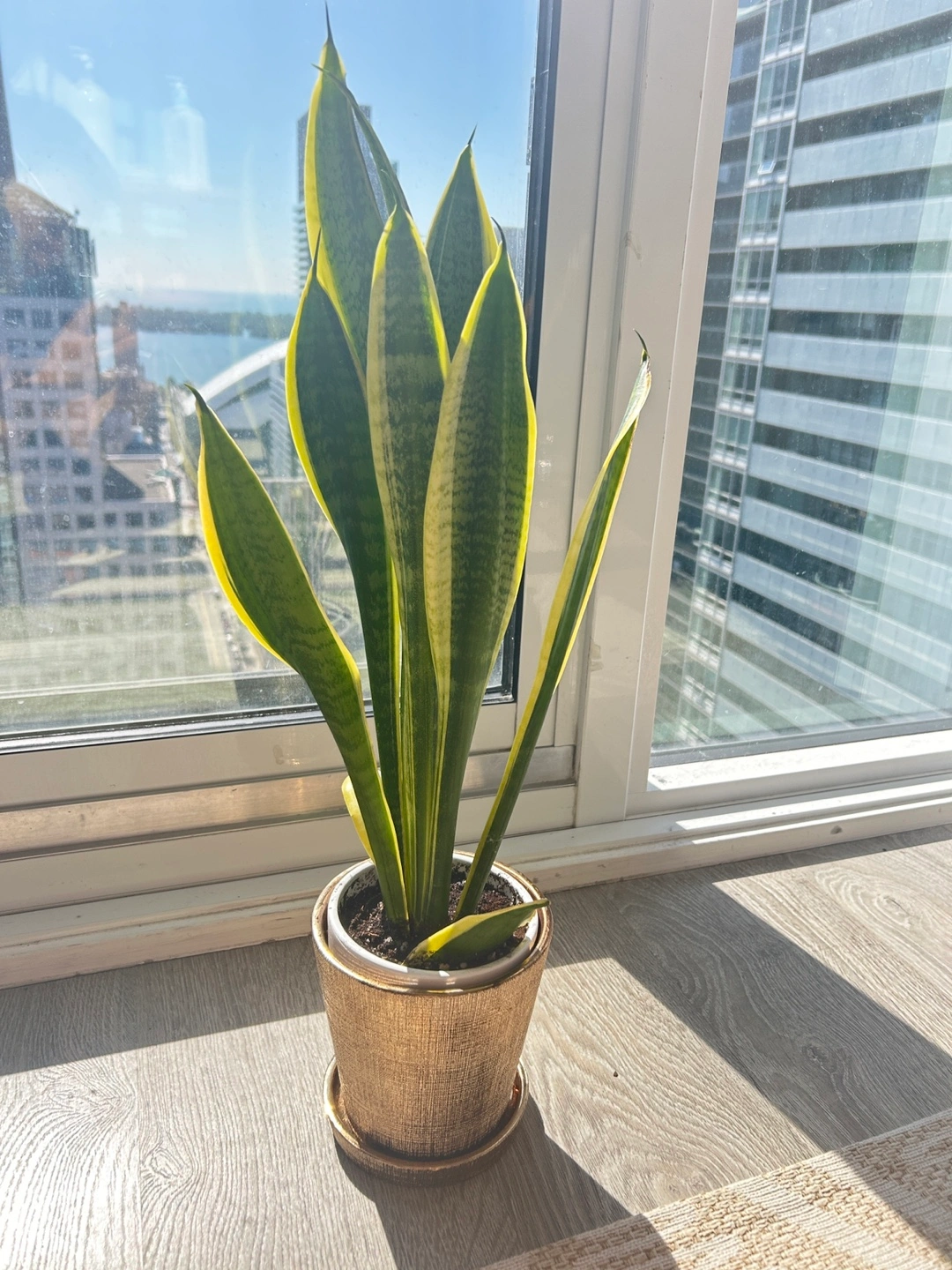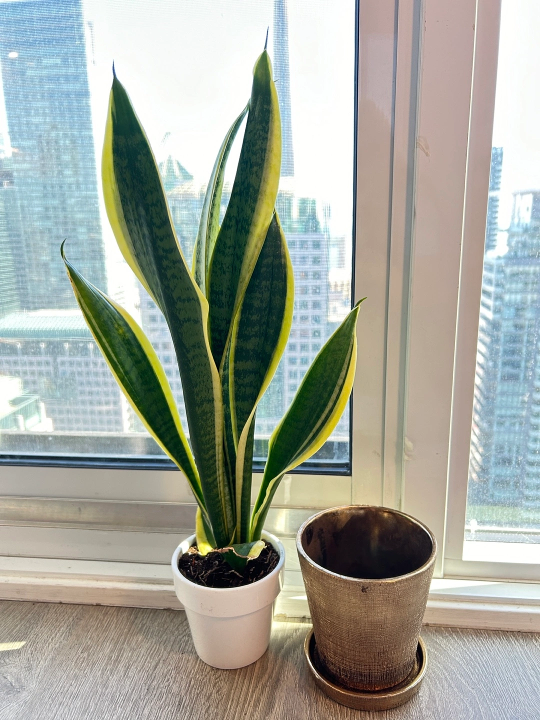 🥕Selling a 20 inches high golden snake plant 🪴 with original white pot and a EXTRA golden flower pot Originally priced at $11.99 🥕