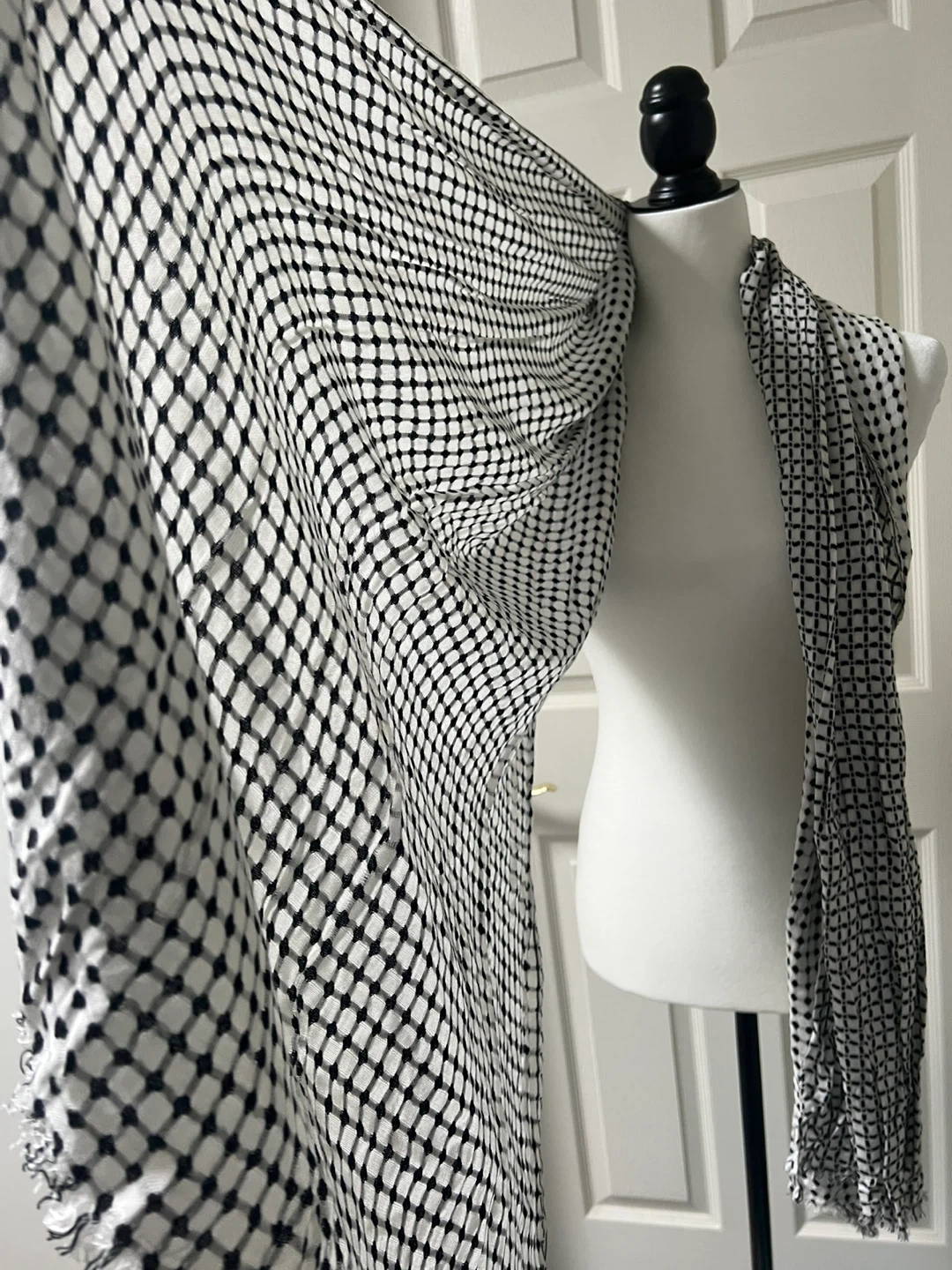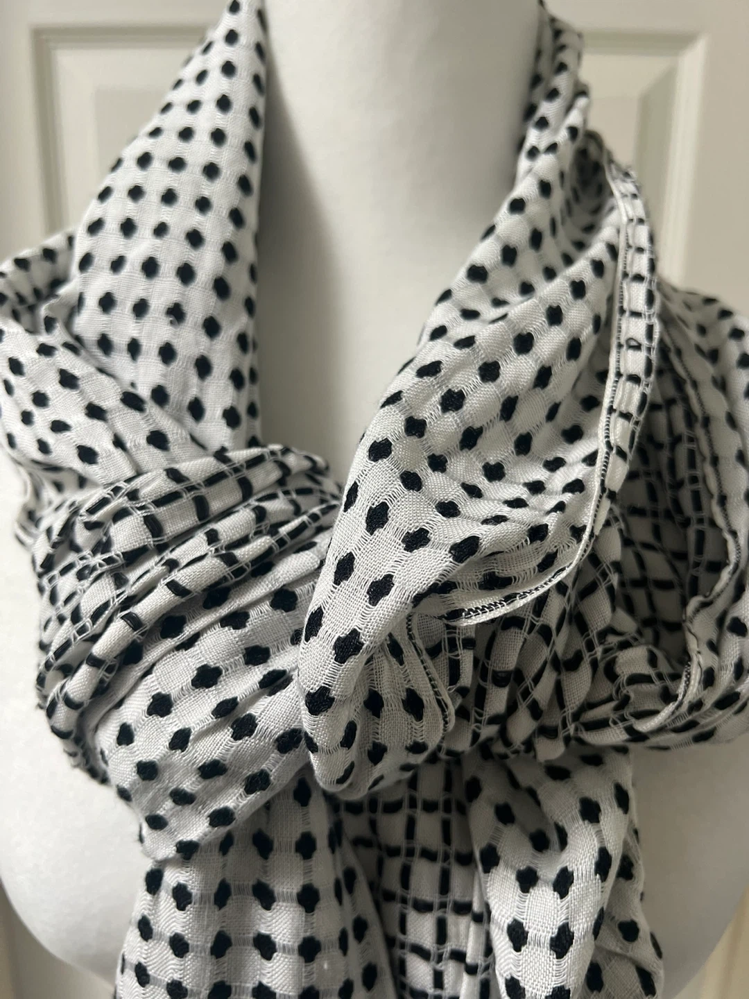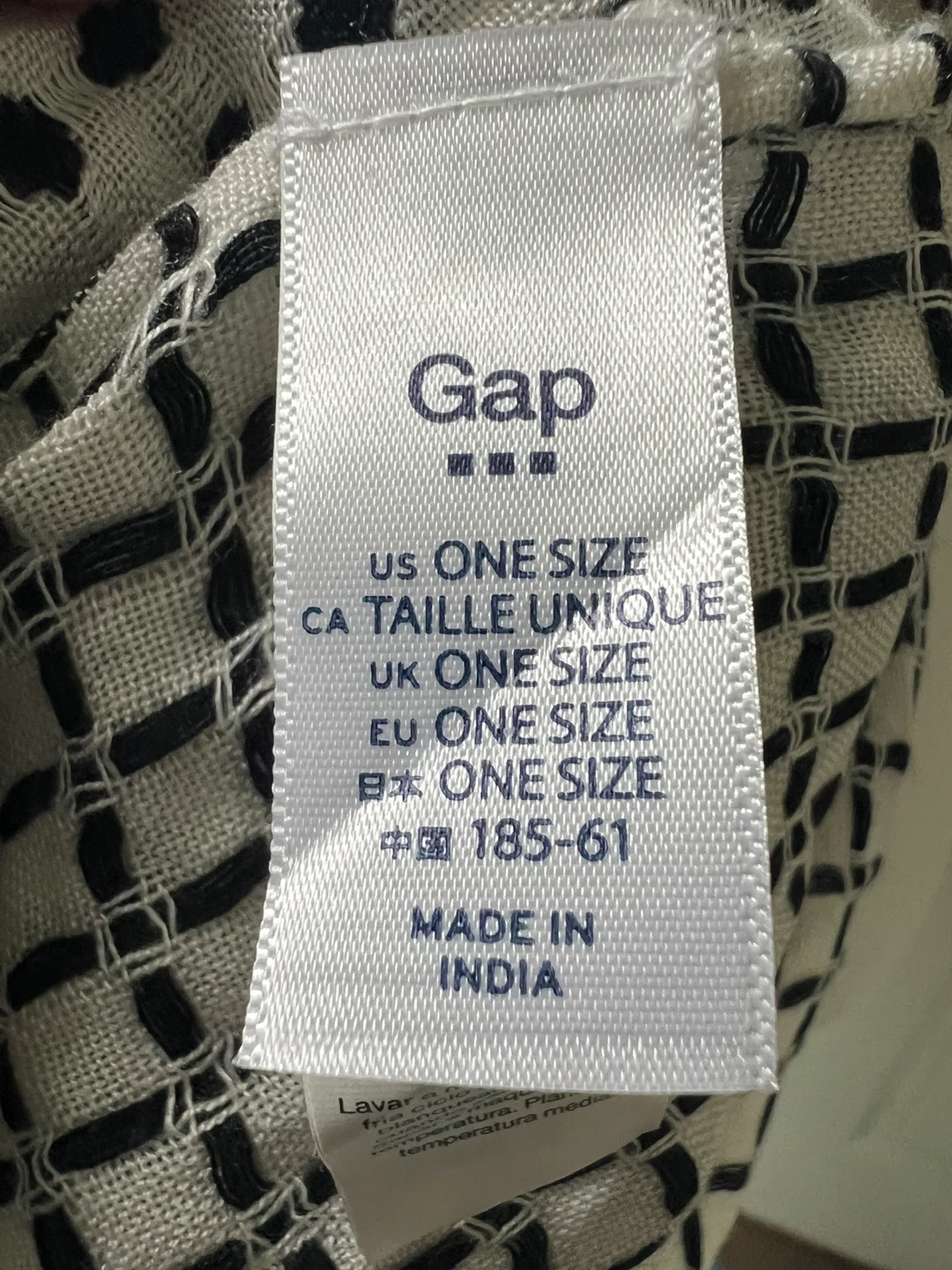 This vintage new GAP scarf has a different pattern in black and white on each side. It’s generous in size. Suits man or woman. New, not used!