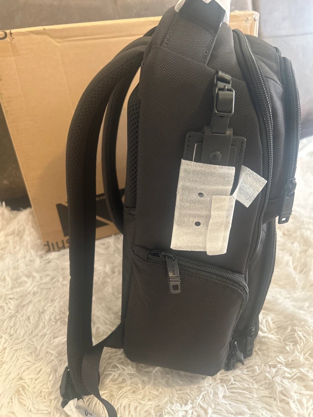 Selling a brand new Tumi Alpha Bravo London Roll Top Backpack in black! This stylish and functional backpack is perfect for everyday use or travel. It comes with the original box, so it's ready to go to its new home.