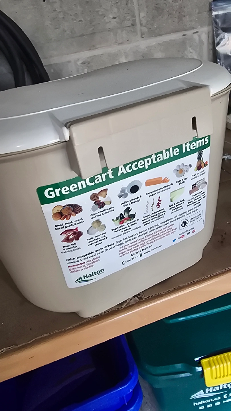 GreenCart bin for acceptable compostable items. It's in good condition and ready to help you with your composting needs