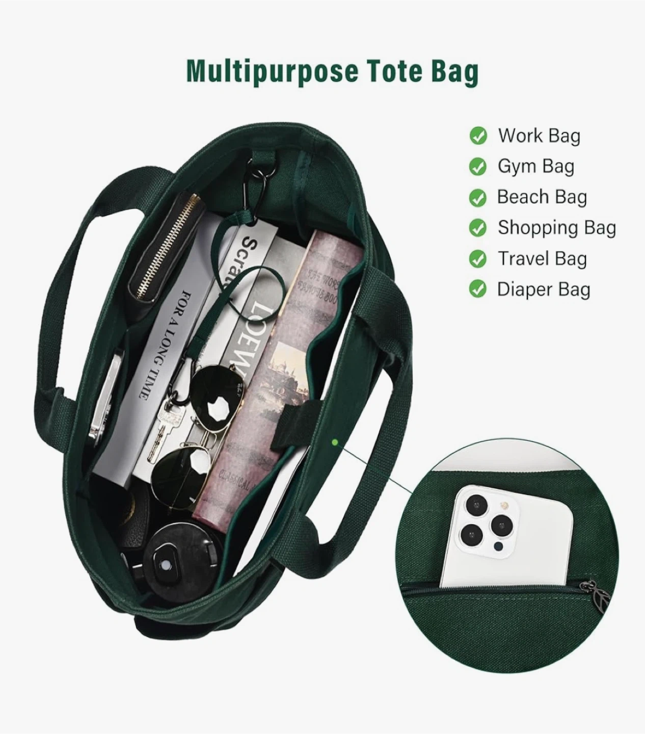 Looking to pass along this handy green canvas tote bag! It comes with both handles and a shoulder strap, making it super versatile. It has a zippered closure and a few pockets inside to keep things organized. Perfect for groceries, books, or everyday essentials Pickup downtown and cash only !