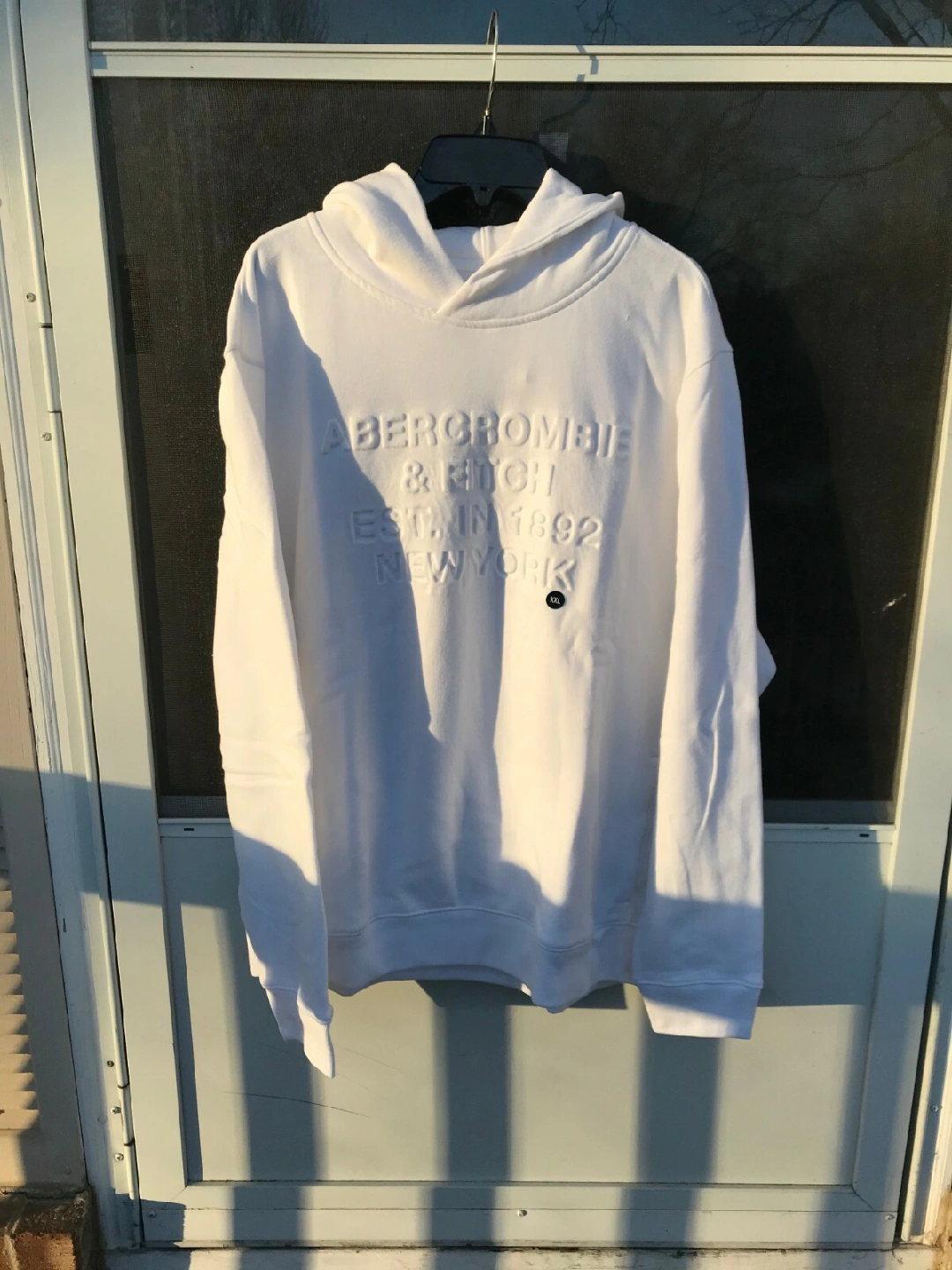 Selling a brand new Abercrombie & Fitch hoodie in size medium! The hoodie is white with the brand name embossed on the front. Brand New, Perfect for a cozy and stylish look! Medium
