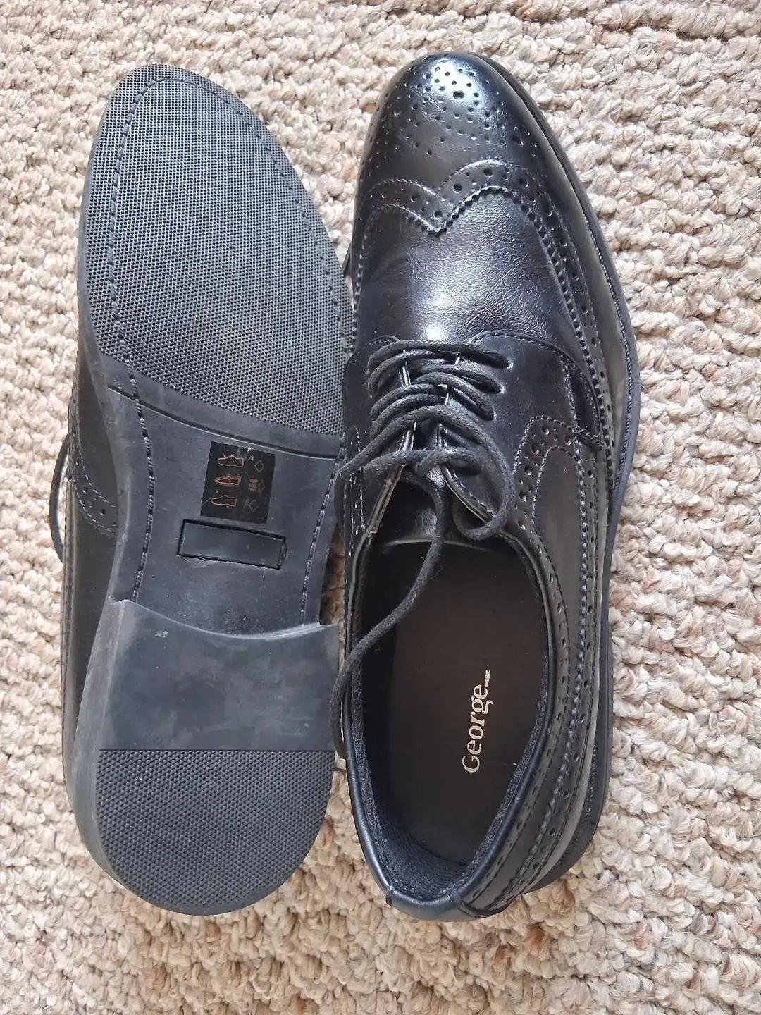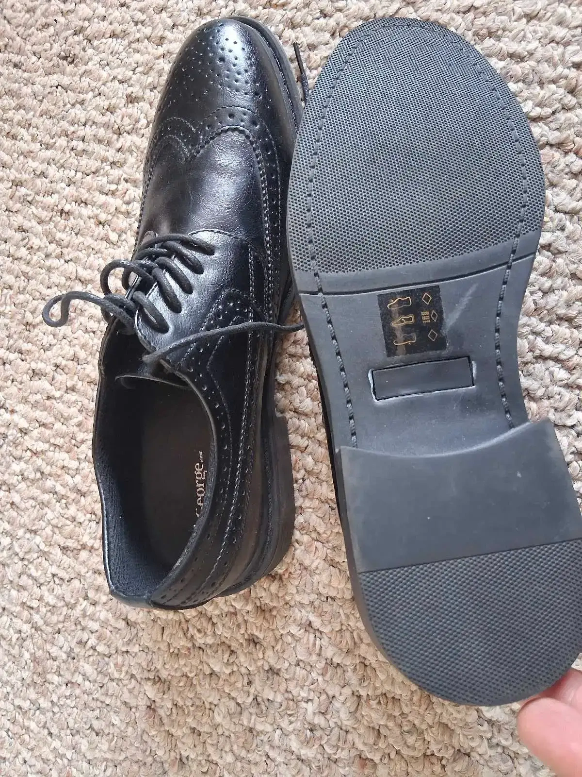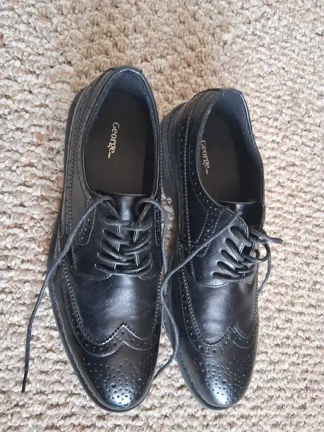 Step out in style with these brand new George dress shoes in size 8, perfect for any formal occasion. These shoes feature a sleek, black design, lace-up closure, and durable construction. I am sure you will enjoy these shoes. I am only selling them because I bought them online and they didn't fit me.