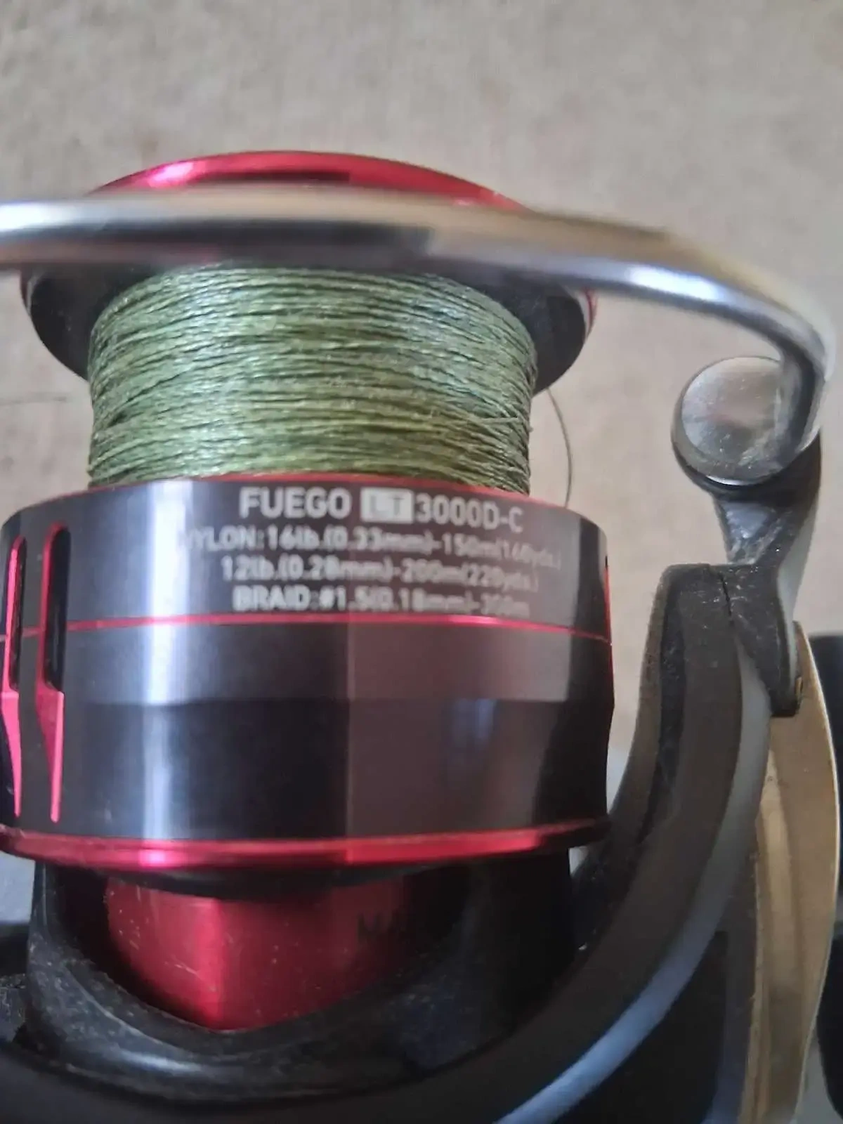 I'm selling a used Fuego LT 3000D-C spinning reel, perfect for light to medium fishing applications. This reel is known for its lightweight design and smooth operation, making it a joy to use for long days on the water. I would say the reel is in good condition. Here are some specs: * Gear Ratio: 5.2:1 * Weight: 7.2 oz (205g) * Max Drag: 22 lbs * Line Capacity (Mono): 10lb/190yds, 12lb/150yds * Line Capacity (Braid): 15lb/220yds, 20lb/170yds Happy fishing!