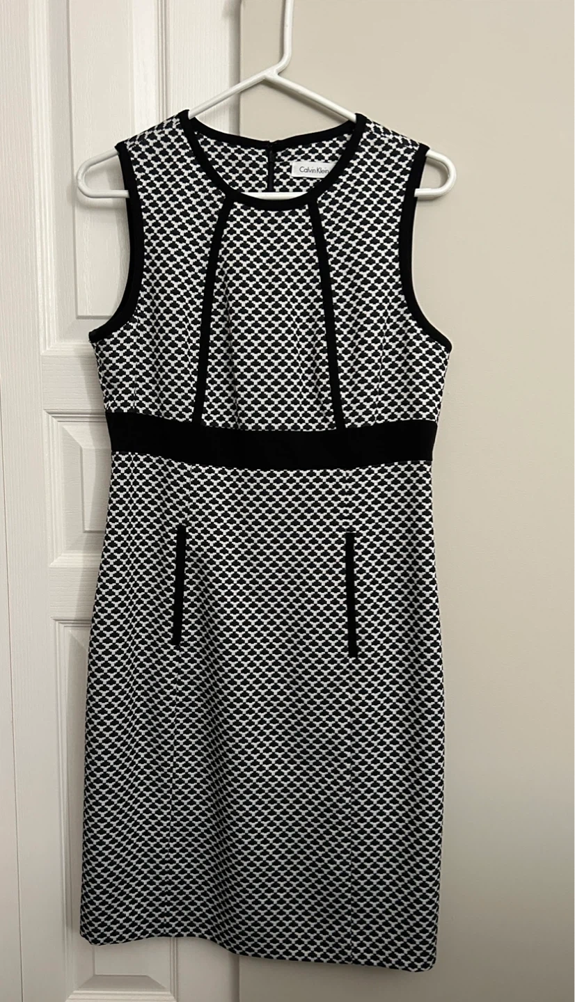 Selling a Calvin Klein dress in size 10! It's a stylish black and white pattern, perfect for any occasion. It also has pockets! The dress is in excellent condition and ready for a new home Meet in Burnaby