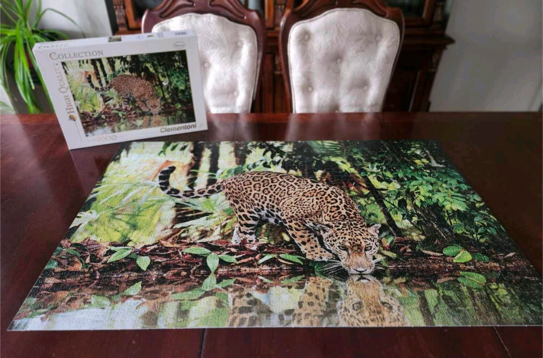 Selling a Clementoni High Quality Collection puzzle with 2000 pieces! The puzzle depicts a jaguar in a jungle scene. It's a beautiful and challenging puzzle for those who enjoy a good brain teaser. All pieces accounted for