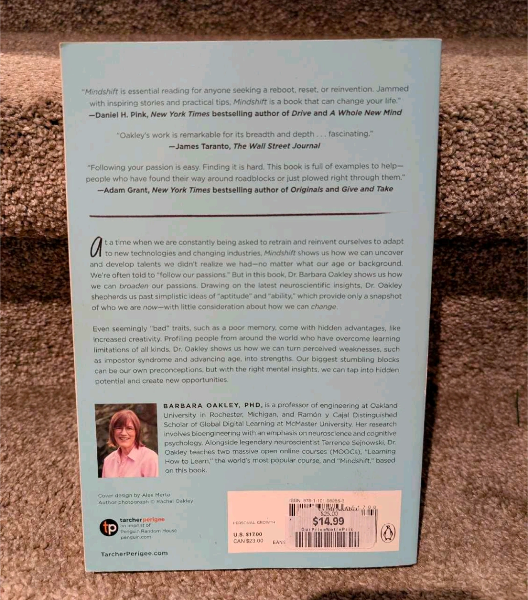 Selling the book Mindshift by Barbara Oakley! It's a great read to help break through obstacles to learning and discover your hidden potential. The book is in excellent condition and originally cost $14.99.