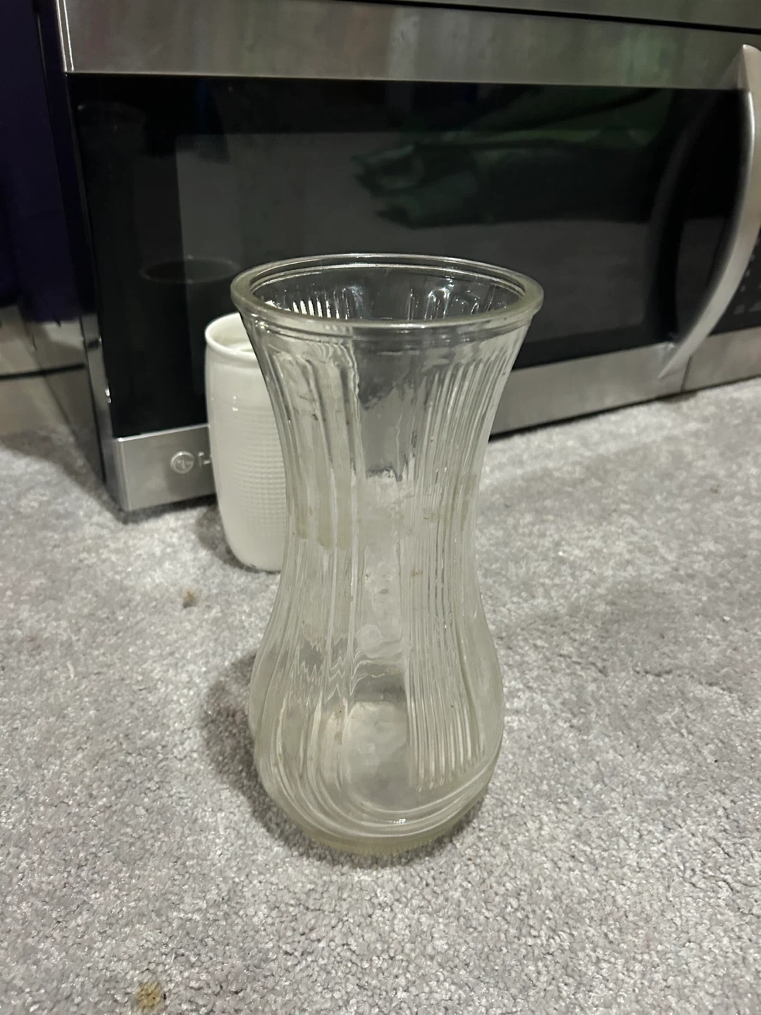 Selling a clear glass vase. It is in good condition and would look great with flowers!