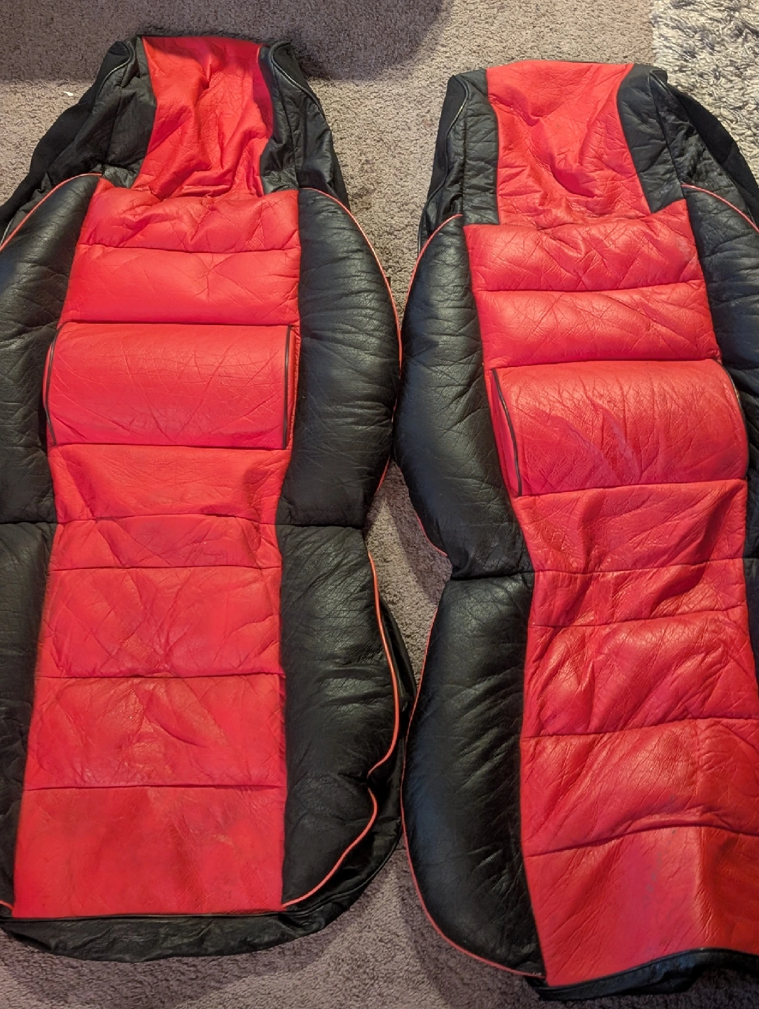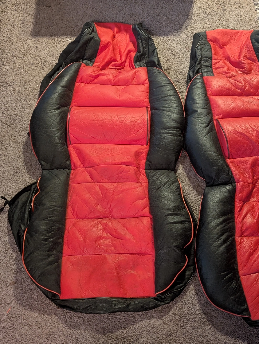 Selling a set of red and black car seat covers. They're in good condition and ready to give your car's interior a fresh new look!