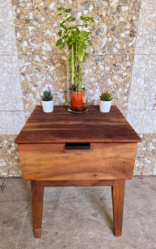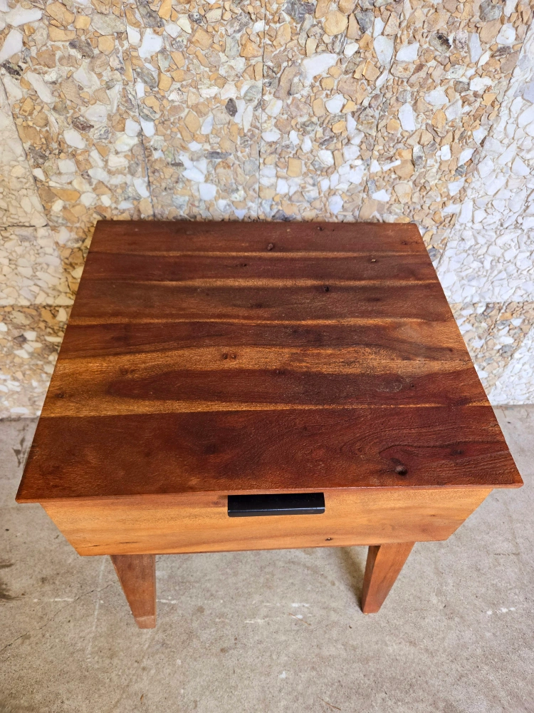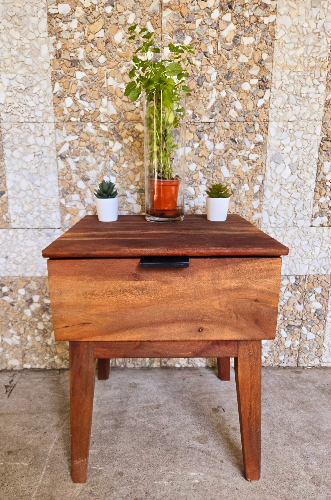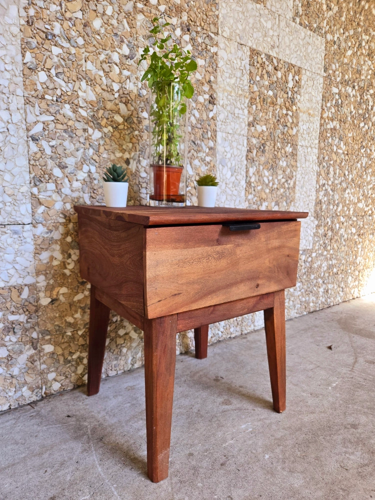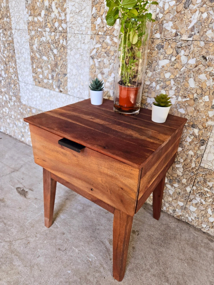 Single MCM Style Reclaimed Solid Wood Nightstand With Single Drawer 17 inch width 15 inch depth 20 1/4 inch height Delivery Available Pick up in downtown Vancouver or delivery may be arranged for a reasonable fee. Tags: retro vintage scandi Scandinavian Sweden ikea rocking rocker recliner chair living room lounge cb2 eq3 west elm pottery barn crate and barrel structube article urban barn moes Scandesign rove concept mcm mid century modern eames herman miller plywood bentwood accent bedroom gaming armchair westendtrends vanvaluevintage