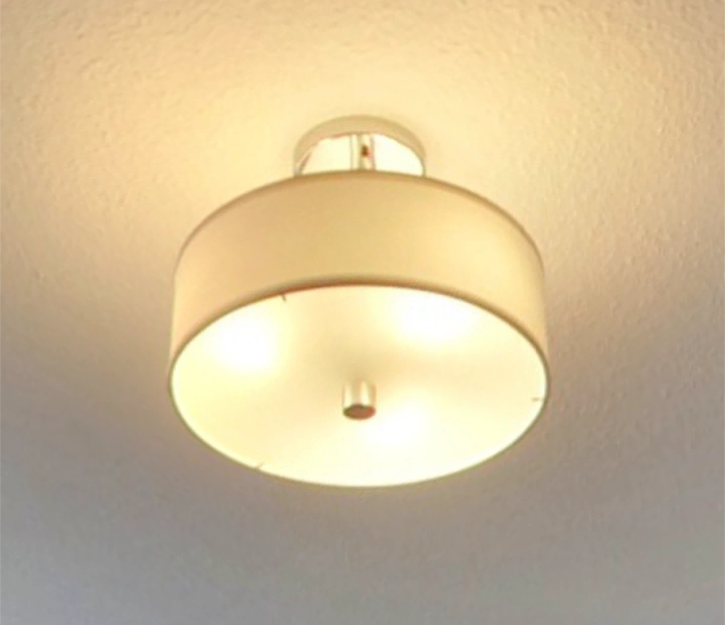 Two drum ceiling lights available. 3 bulbs in each. Round shade with glass. 13”. Comes with 3 light bulbs in each. $6 each Available for pickup in Markland Wood.
