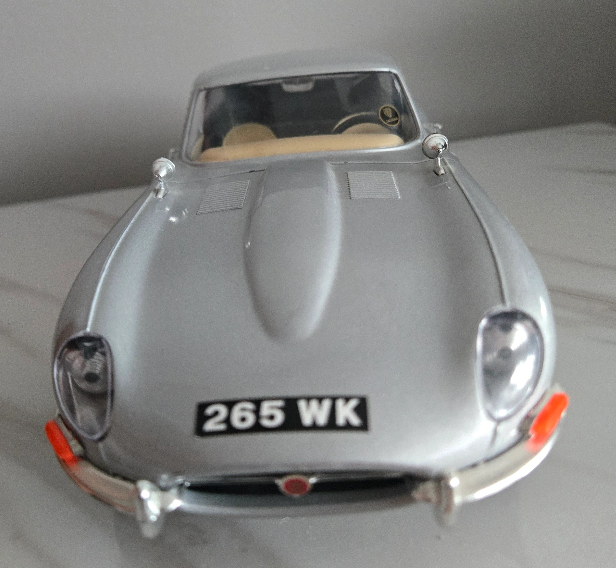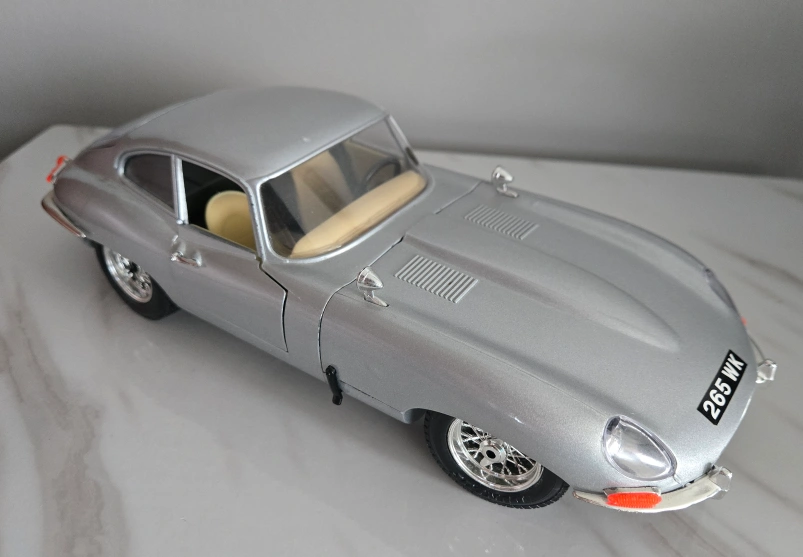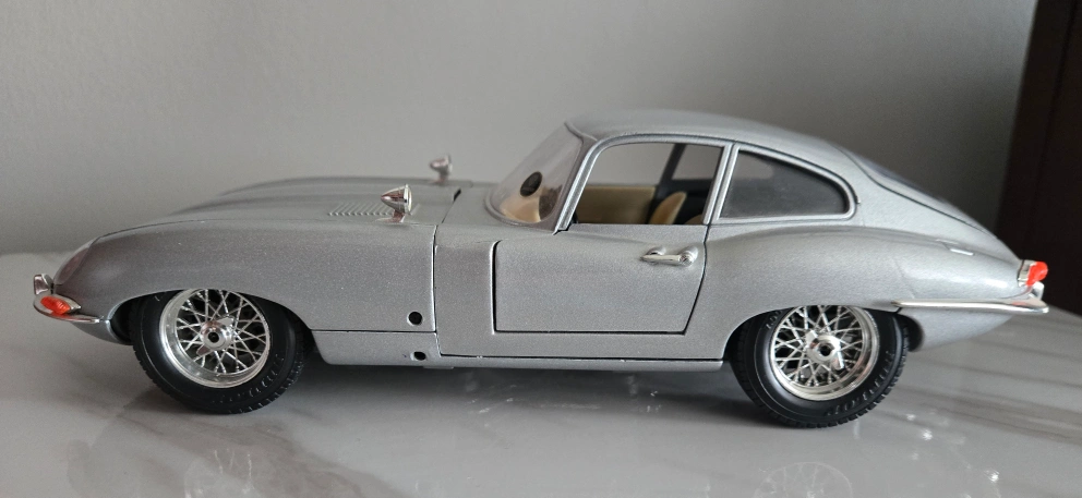 Selling a diecast model 3038 of a Jaguar E-Type 1:18 scale. Made in Italy by Burago. Dimensions 10"×4"×2.6".It's silver and in great shape, with lots of detail. Perfect for a collector or anyone who loves classic cars!