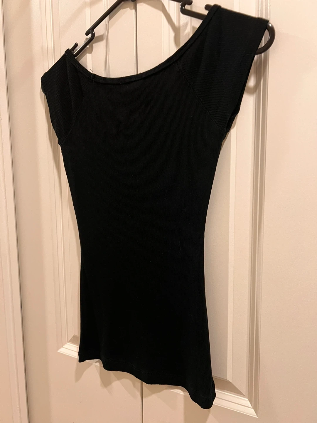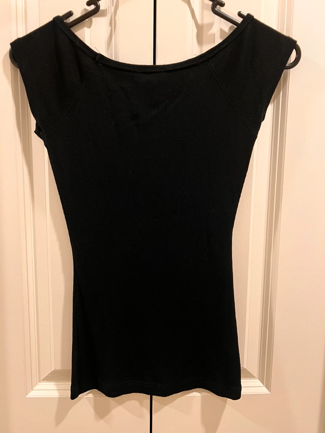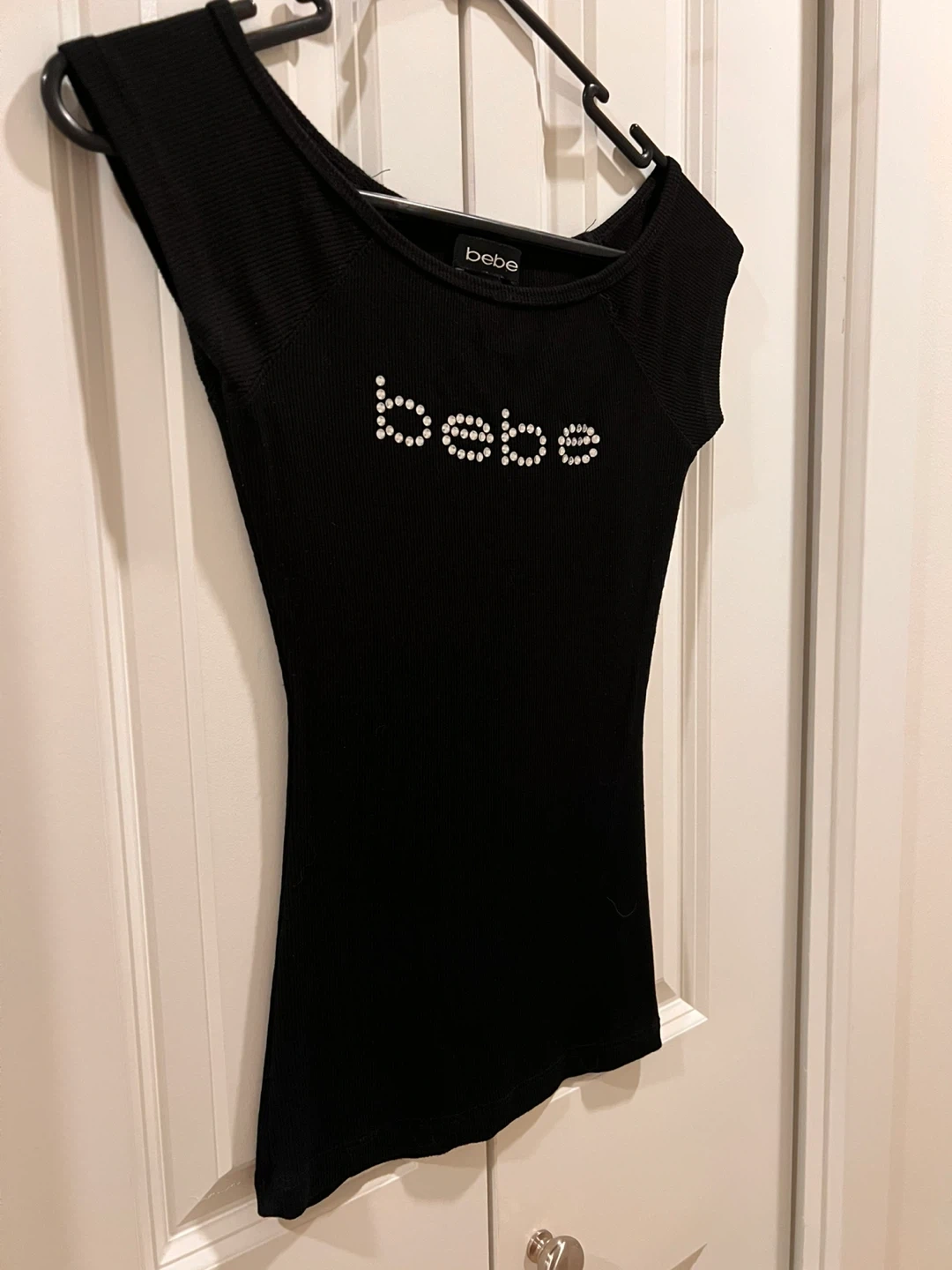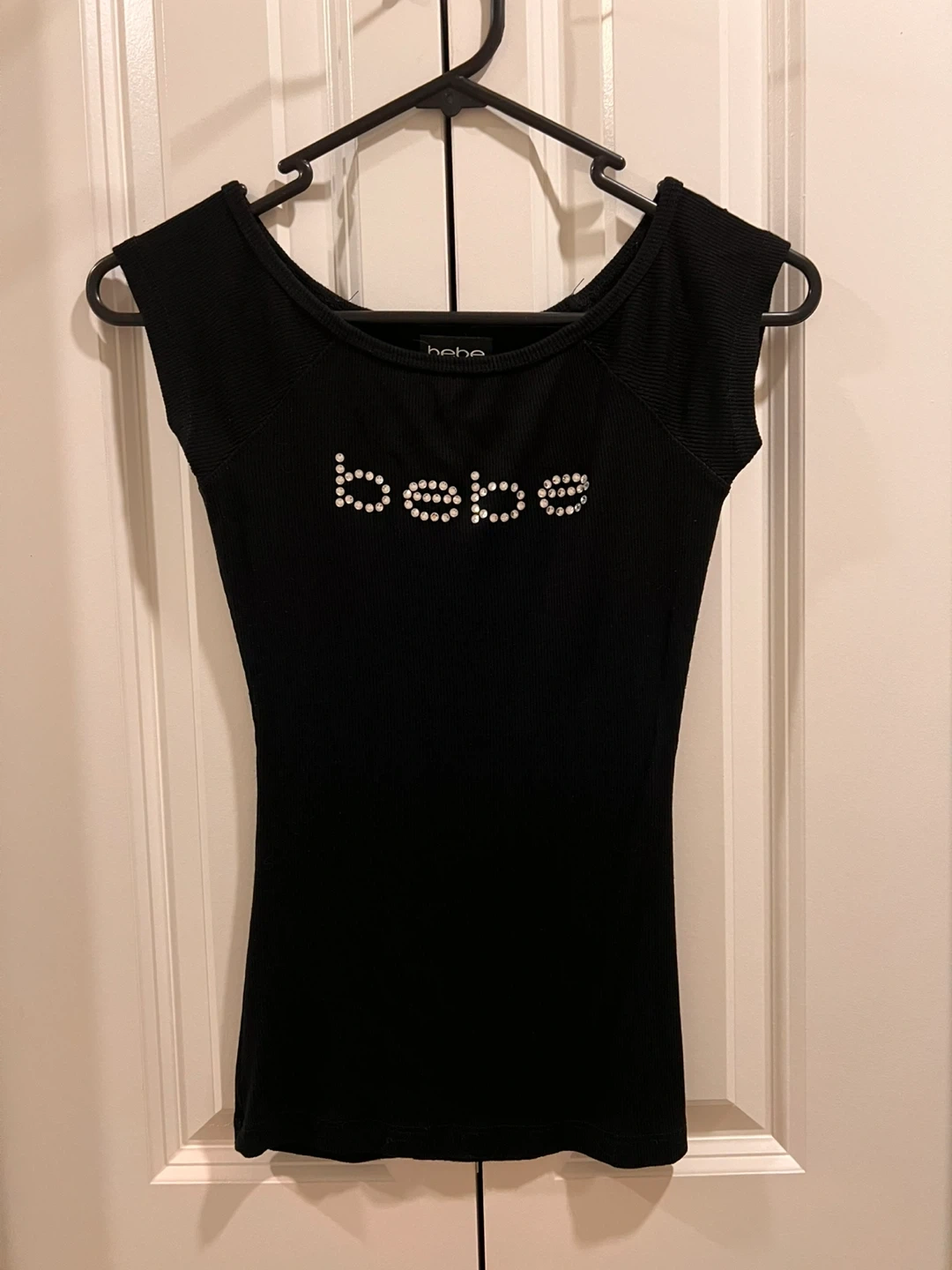 Ribbed, black, cap-sleeve bebe top Original rhinestone detail Cash only Near 128 and 64 avenue Pick up or meet up
